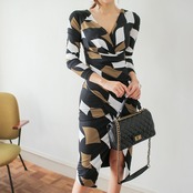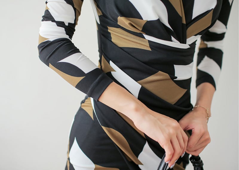 【新作】【送料無料】 セクシーな幾何学的なプリントボディコンドレス女性2019年春スリムウエストスプリットボディコンドレスは、OLフィットVestidosを動作させるために着用します スプリング 春物 12b151405881494
