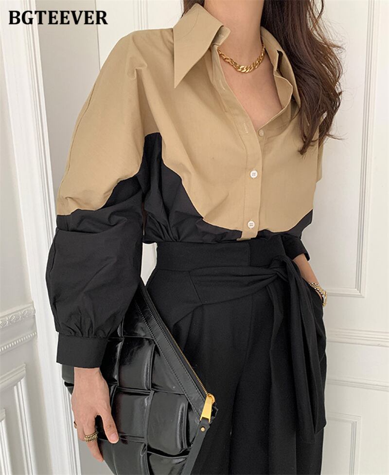 【新作】【送料無料】 BGTEEVERシックなターンダウンカラーレディースパッチワークシャツブラウススタイリッシュなシングルブレストルーズシャツ2021春 スプリング 春物 12b171570164220