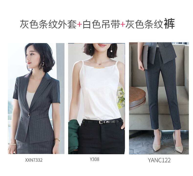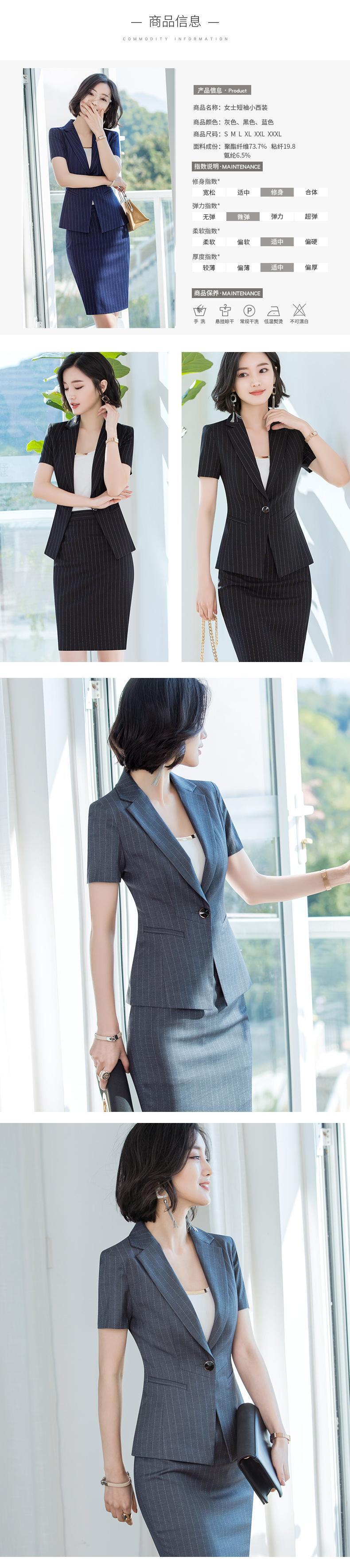 【新作】【送料無料】 ウールビジネススーツ女性2019新しい夏のストライプ半袖スカートファッション気質OLフロントデスクオーバーオール-アリババ サマー 夏物 12b326997031359