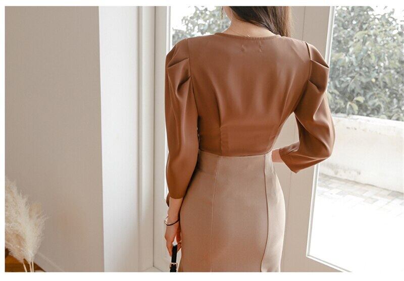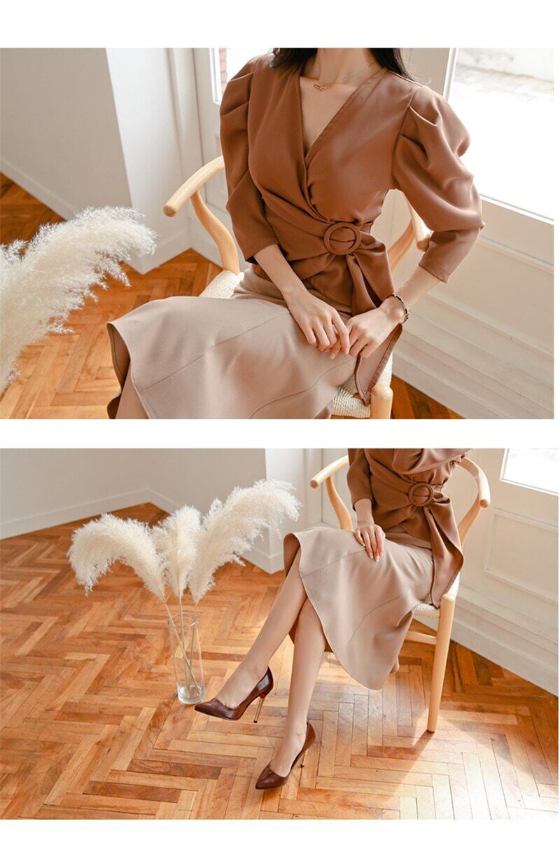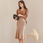 【新作】【送料無料】 BGTEEVERオフィス2ピースセットVネックブラウス&ヒップパッケージマーメイドスカートスーツ2019秋冬女性セット オータム 秋物 ウィンター 冬物 会社 学校 通勤や通学にも 12b185393856275