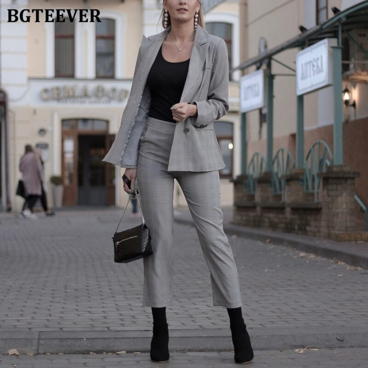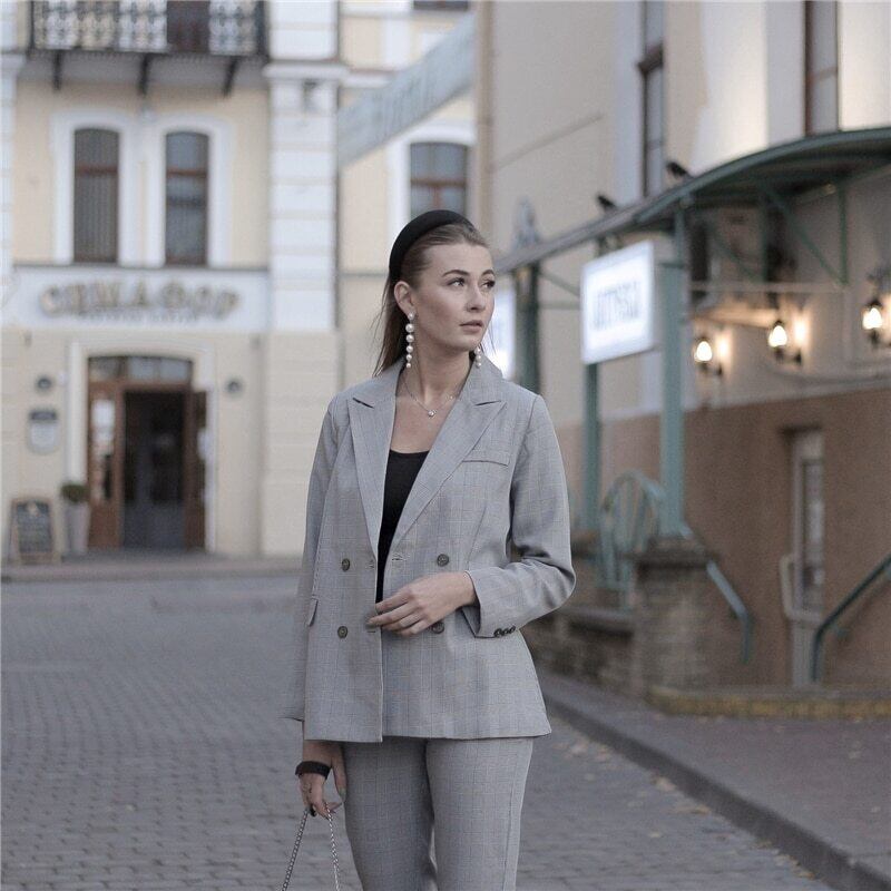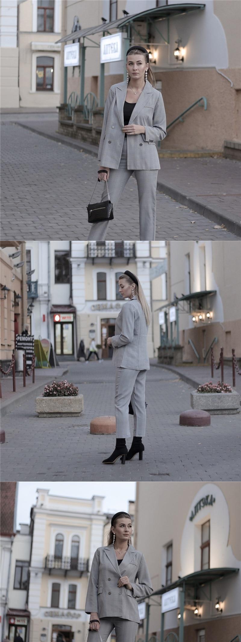 【新作】【送料無料】 BGTEEVERヴィンテージチェック柄レディースパンツスーツダブルブレストジャケット&ペンシルパンツブレザースーツセットレトロレディースパンツスーツ2019 ビンテージ 12b127785281322