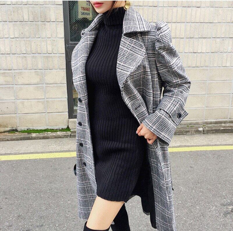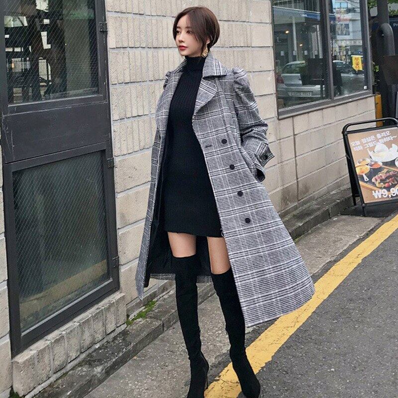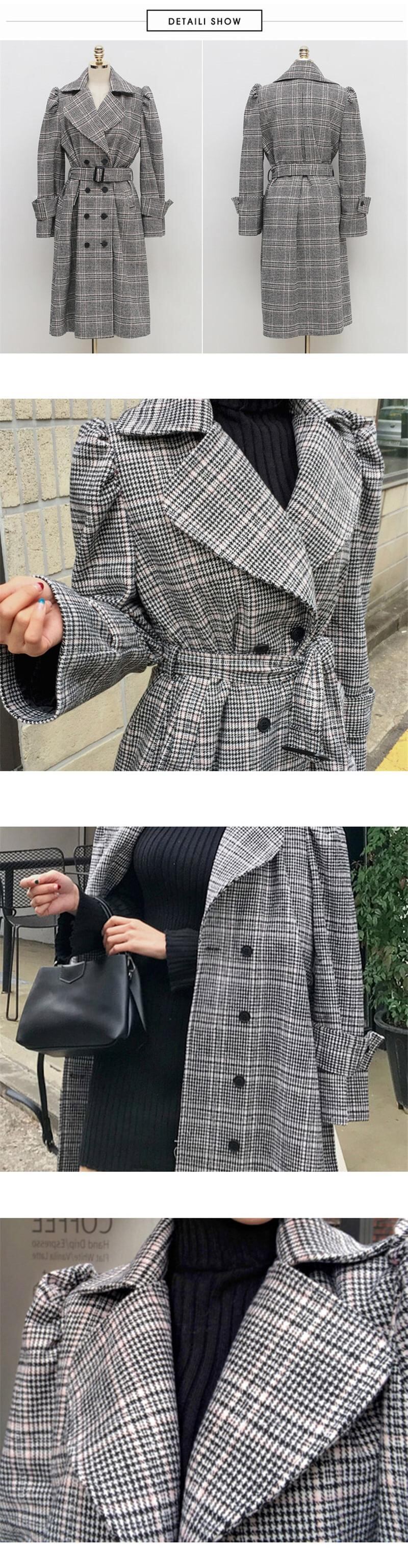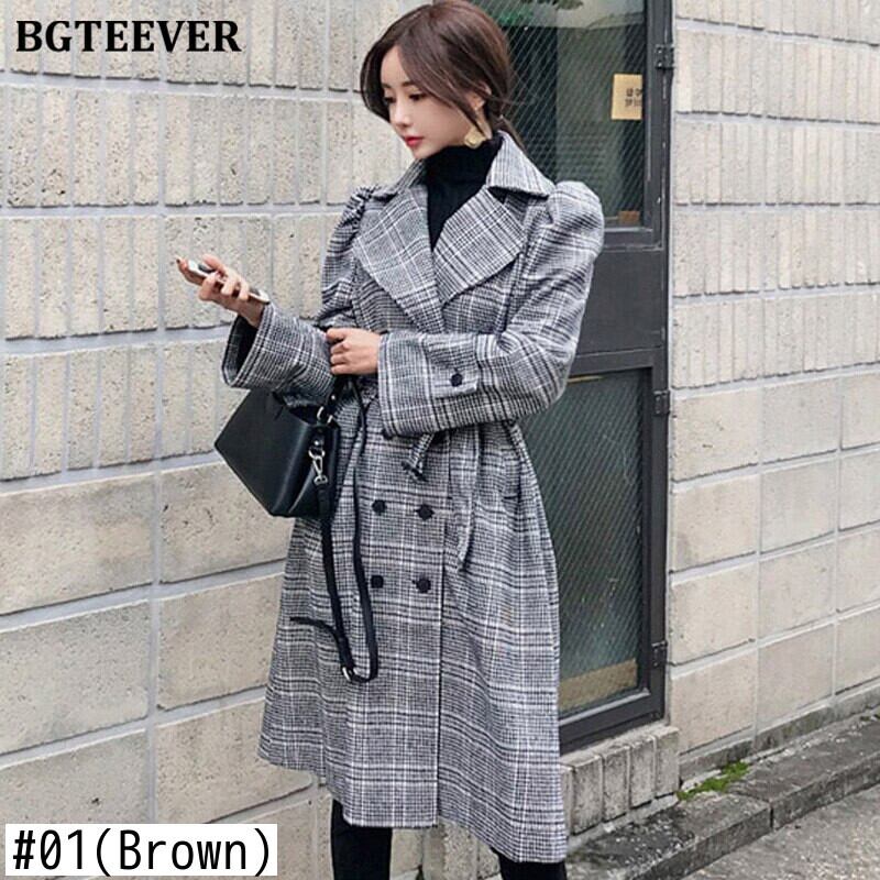 【新作】【送料無料】 BGTEEVERオフィスウェアチェック柄の女性ロングオーバーコート冬の暖かいベルト付きウールコートダブルブレストのルーズアウター2019 ウィンター 冬物 ハーネス 会社 学校 通勤や通学にも 12b128087622029