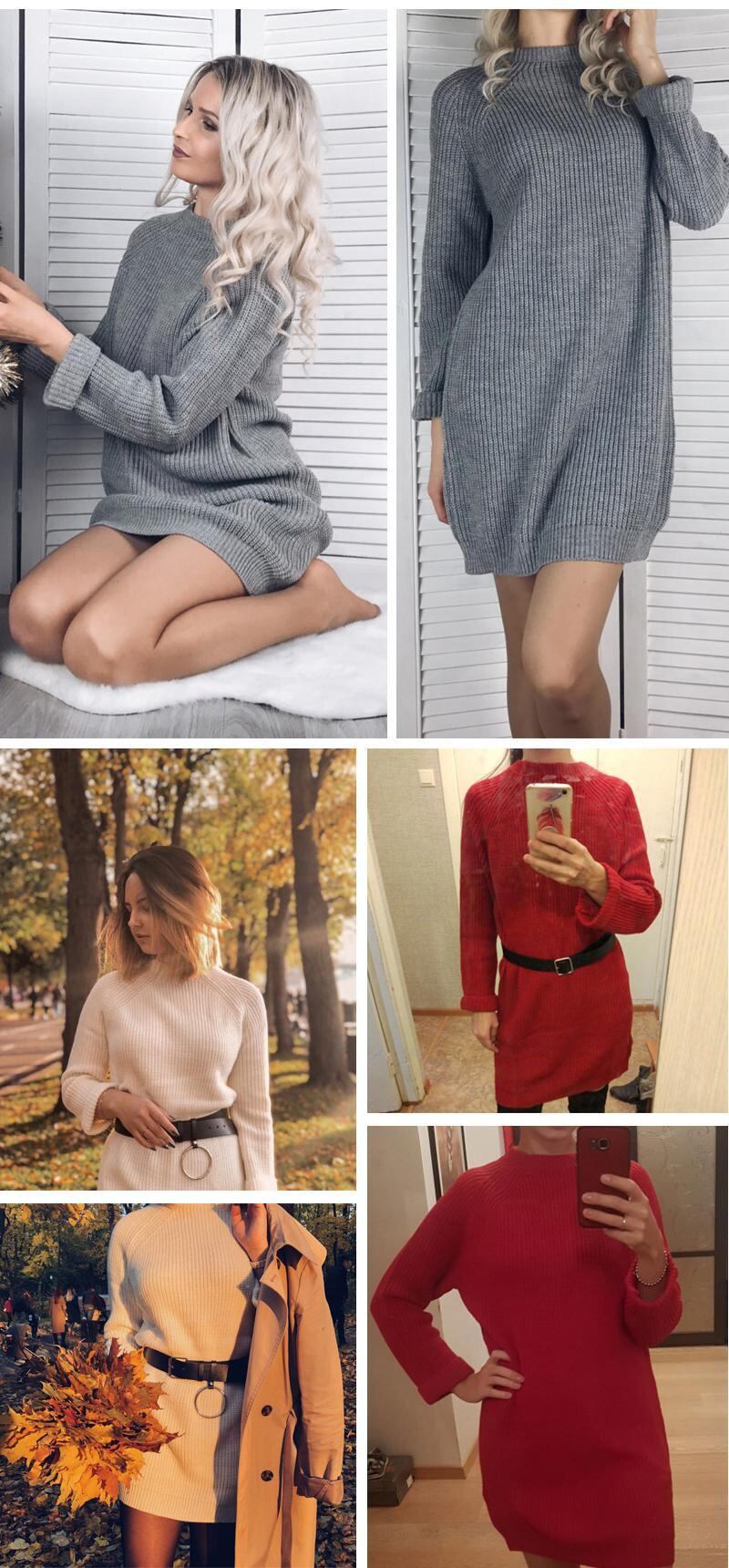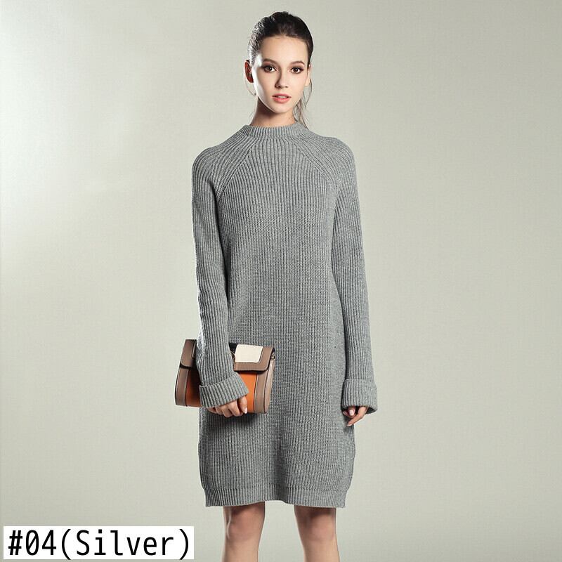 【新作】【送料無料】 秋冬ソリッドニットコットンセータードレス女性ルーズOネックプルオーバーニットドレスVestidosFeminino オータム 秋物 ウィンター 冬物 ソリッドカラー 12b192272160316
