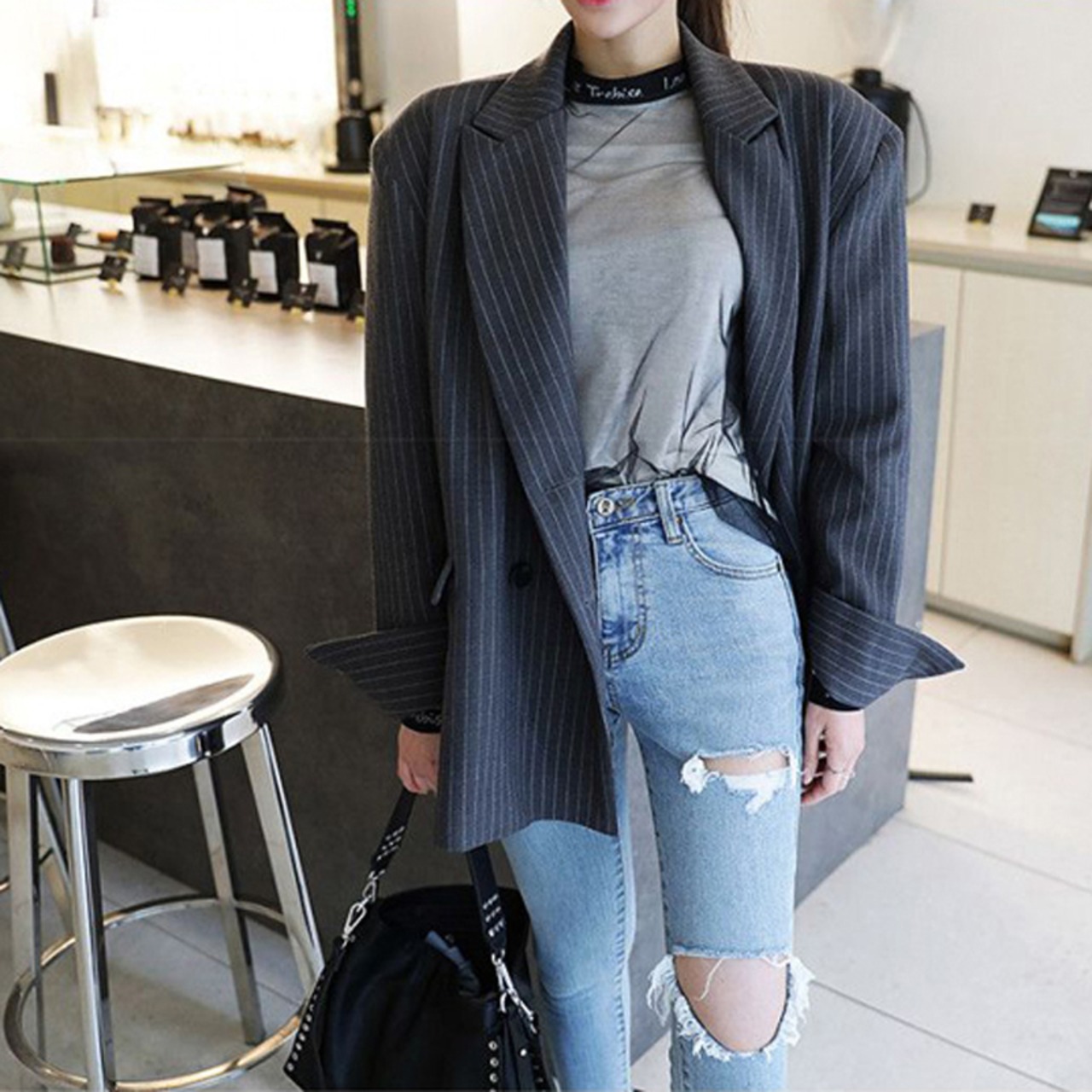 【新作】【送料無料】 プッシュアップスキニーデニムジーンズレディースウエストリップドホールペンシルジーンズストリートウェアストレッチレディースデニムジーンズパンツ2019 12b191951105437