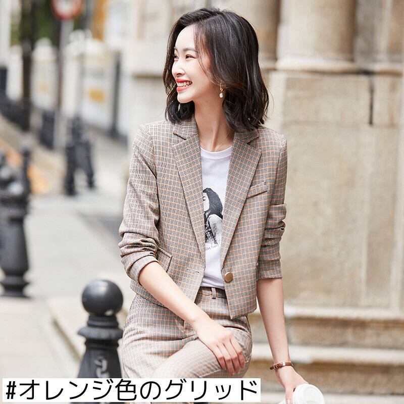 色:オレンジ色のグリッド,アプリコット,オレンジグリッドスーツ+オレンジパンツF8978K,アプリコットスーツ+アプリコットパンツF8978K