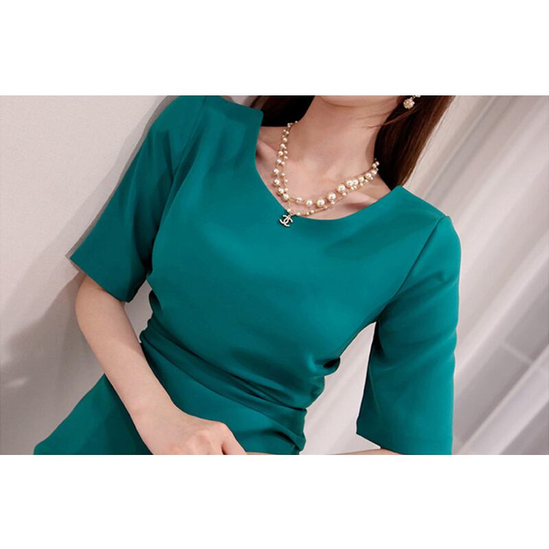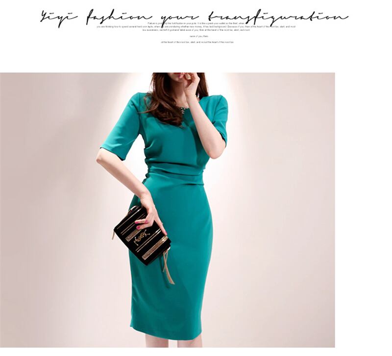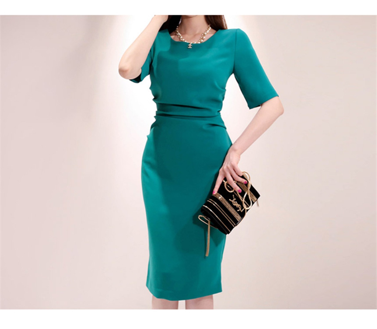 【新作】【送料無料】 ソリッド女性ペンシルドレスOネック半袖ワークオフィスドレスシャーリングウエスト女性ミディVestidosファム ショート ハーフスリーブ フェミニン ソリッドカラー 会社 学校 通勤や通学にも 12b138598727059