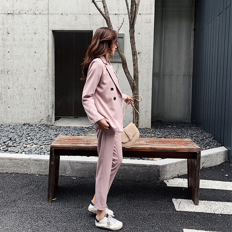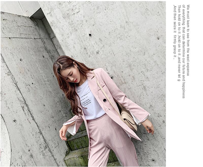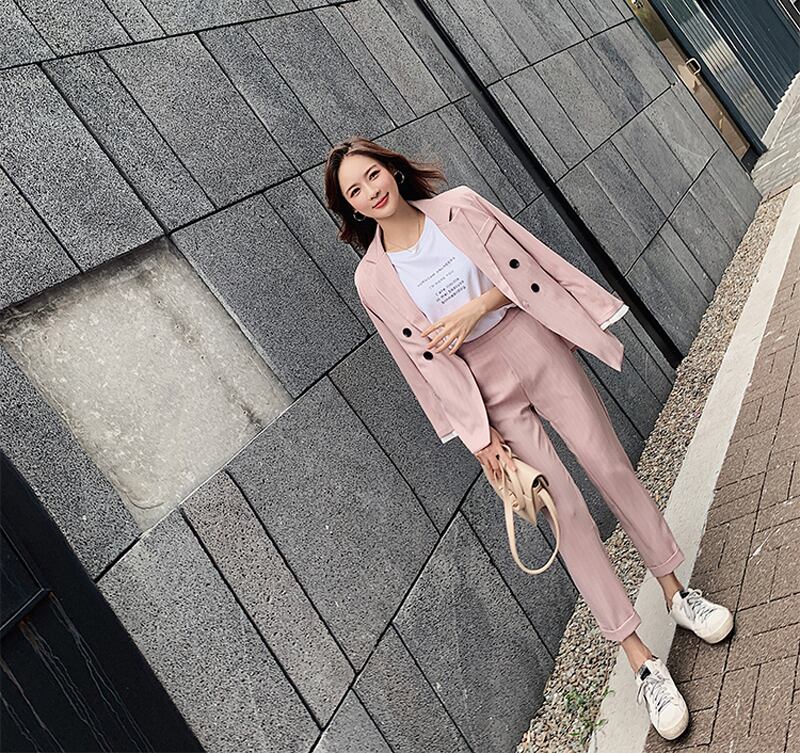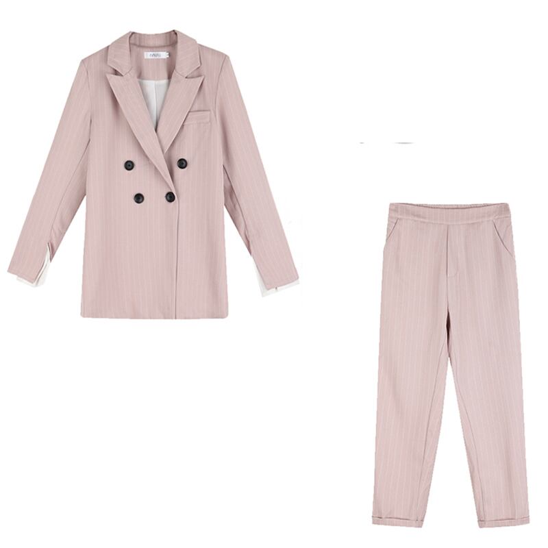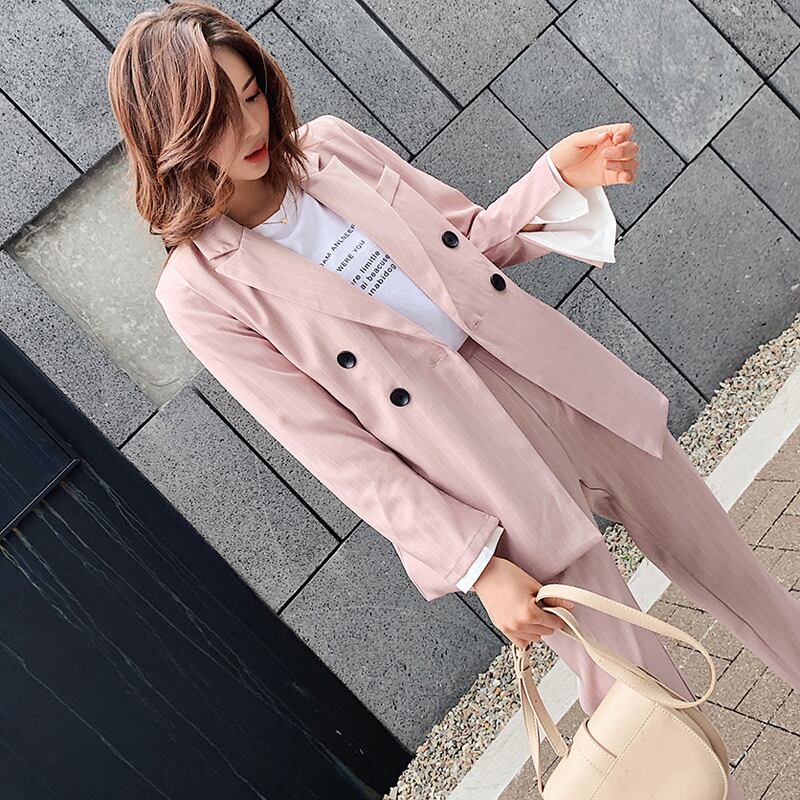 【新作】【送料無料】 ダブルブレストストライプレディースブレザースーツセット長袖レディースパンツスーツオフィス2点セットパンツスーツ ロング 会社 学校 通勤や通学にも 12b166194156260