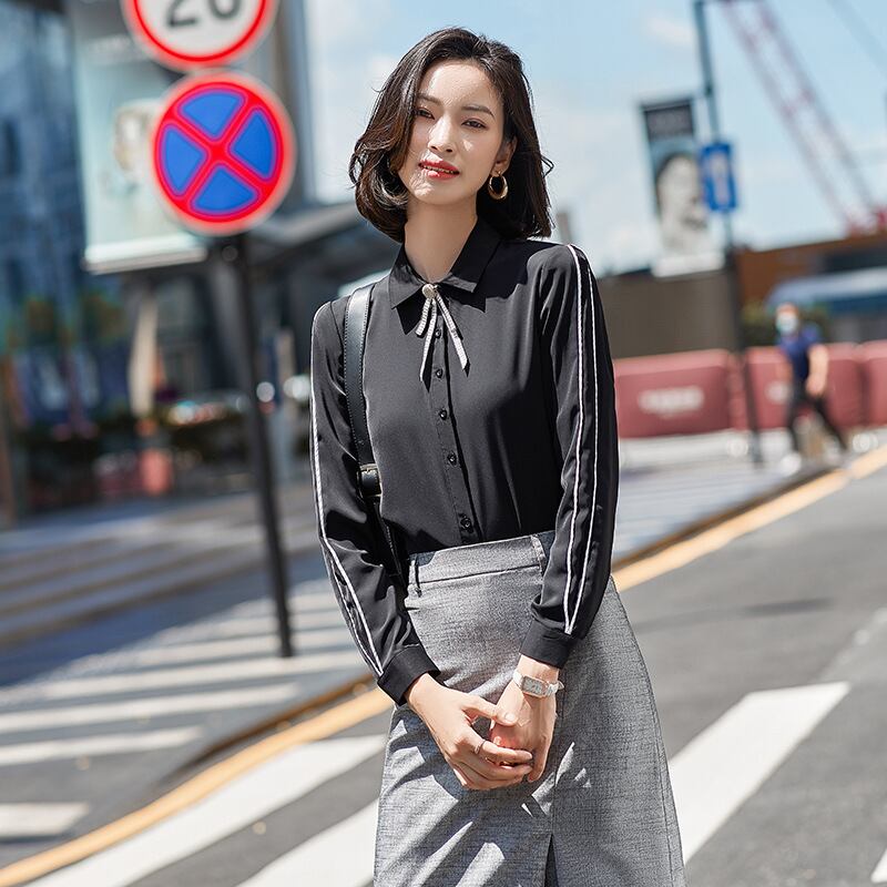 【新作】【送料無料】 リアルソル気質プロウェアシャツレディース長袖スカートスタイルスリムスリム無地シャツカジュアルアンチリンクルタイド-アリババ ロング ソリッドカラー 12b276839796909