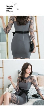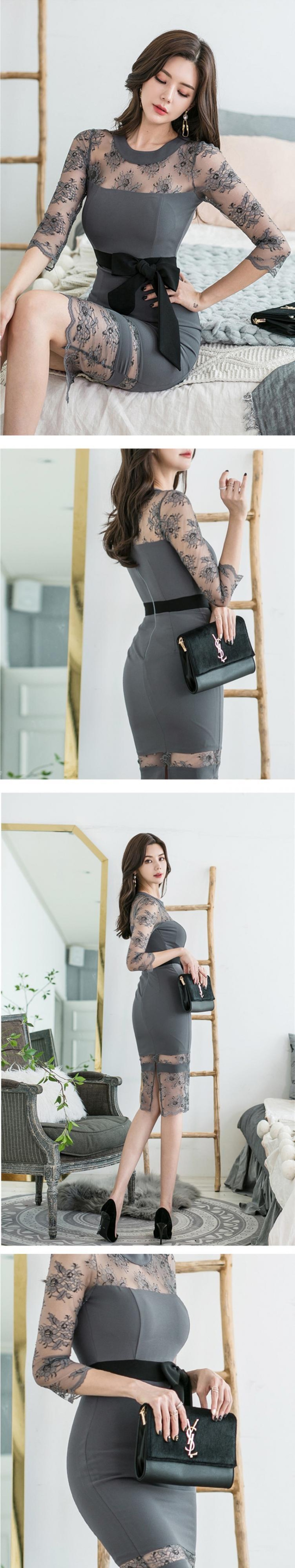 【新作】【送料無料】 BGTEEVEROネックレースパッチワークレディースドレスホローアウトベルトドレス膝丈ペンシル ハーネス 12b124535329725