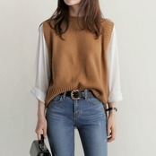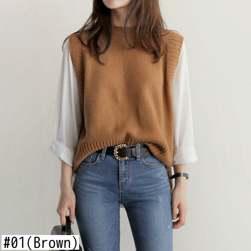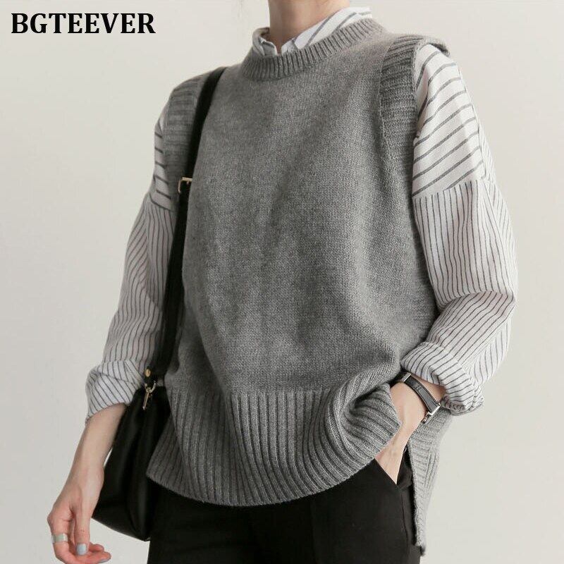 【新作】【送料無料】 BGTEEVER 2020Oネックニットベスト女性セーターシックなルーズニットベストプルオーバーウォームニットジャンパー秋 オータム 秋物 12b183480266809