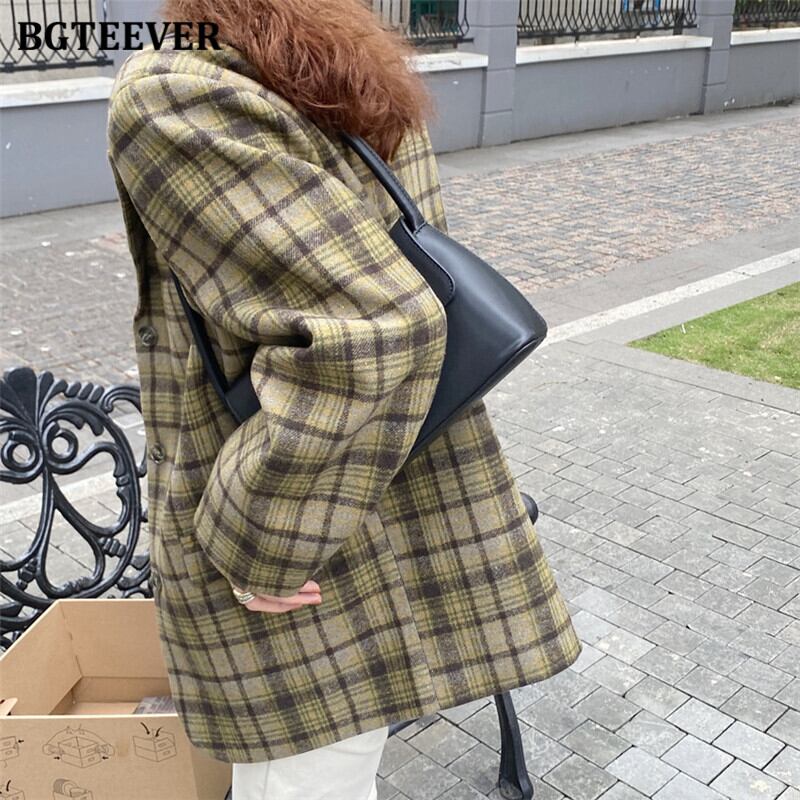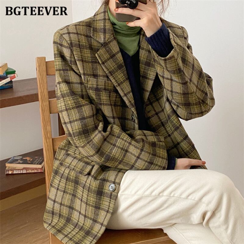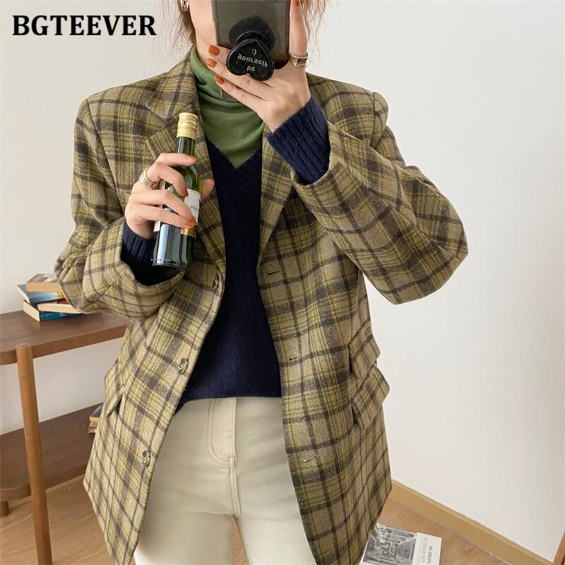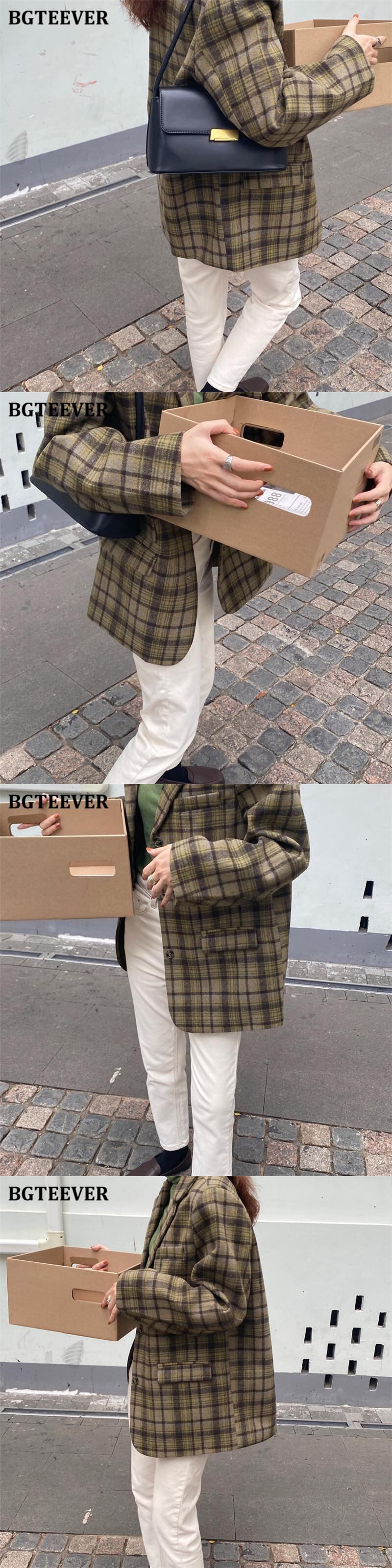 【新作】【送料無料】 BGTEEVERスタイリッシュなヴィンテージノッチカラーシックな女性チェック柄ブレイザー2020秋冬シングルブレストルーズウールジャケット オータム 秋物 ウィンター 冬物 ビンテージ 12b125248634801