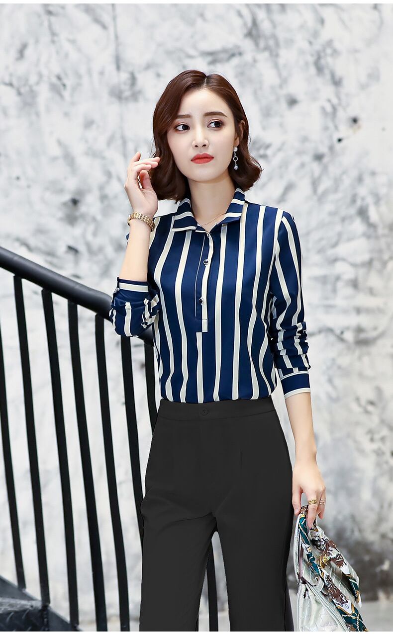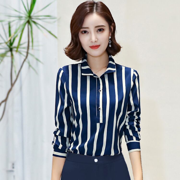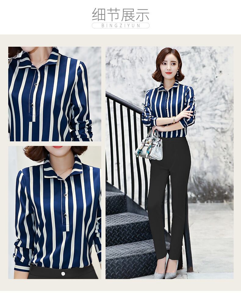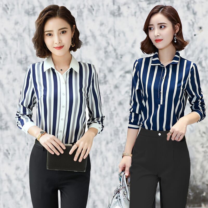 【新作】【送料無料】 プロのシャツ女性長袖2019新しいワイドストライプスムースシャツファッションしわになりにくいオーバーオールスリムスリミング-アリババ ロング 12b356444702167