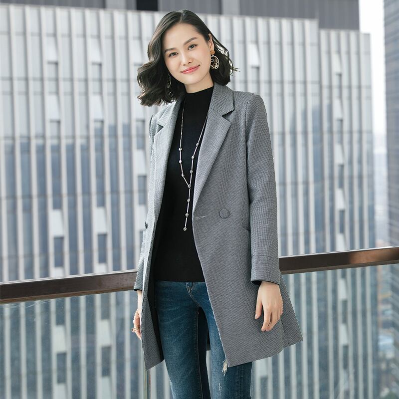 【新作】【送料無料】 2019秋と冬の新しい女性のウールコートミドルレングス千鳥格子レトロな英国のルーズウールコートの女性-アリババ オータム 秋物 ウィンター 冬物 12b34138306985