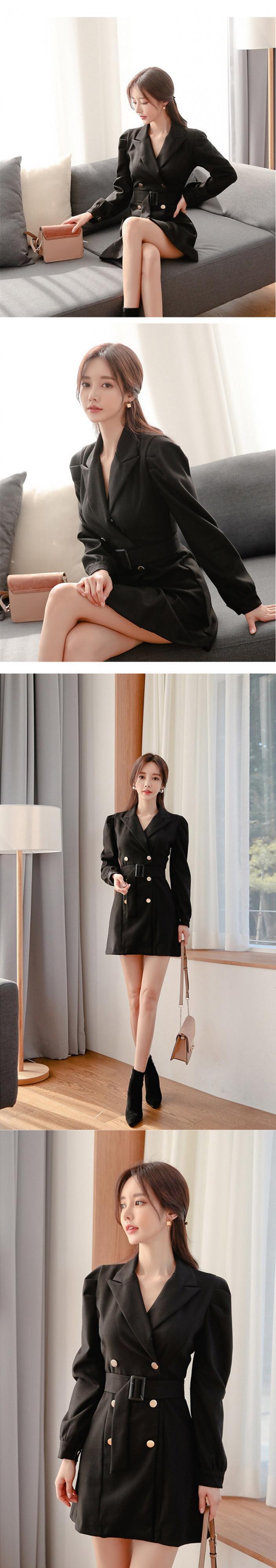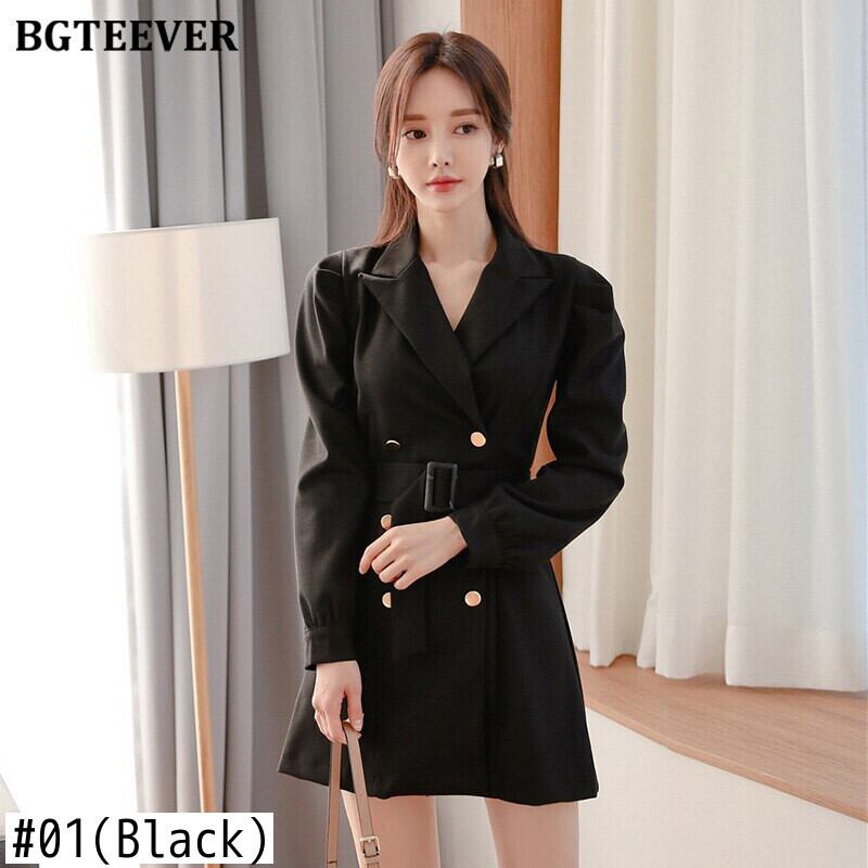 【新作】【送料無料】 BGTEEEVRオフィスダブルブレストスーツドレスフルスリーブサッシュベルト付きミニドレス黒人女性シース ブラック ハーネス 会社 学校 通勤や通学にも 12b187256018299