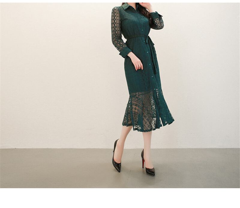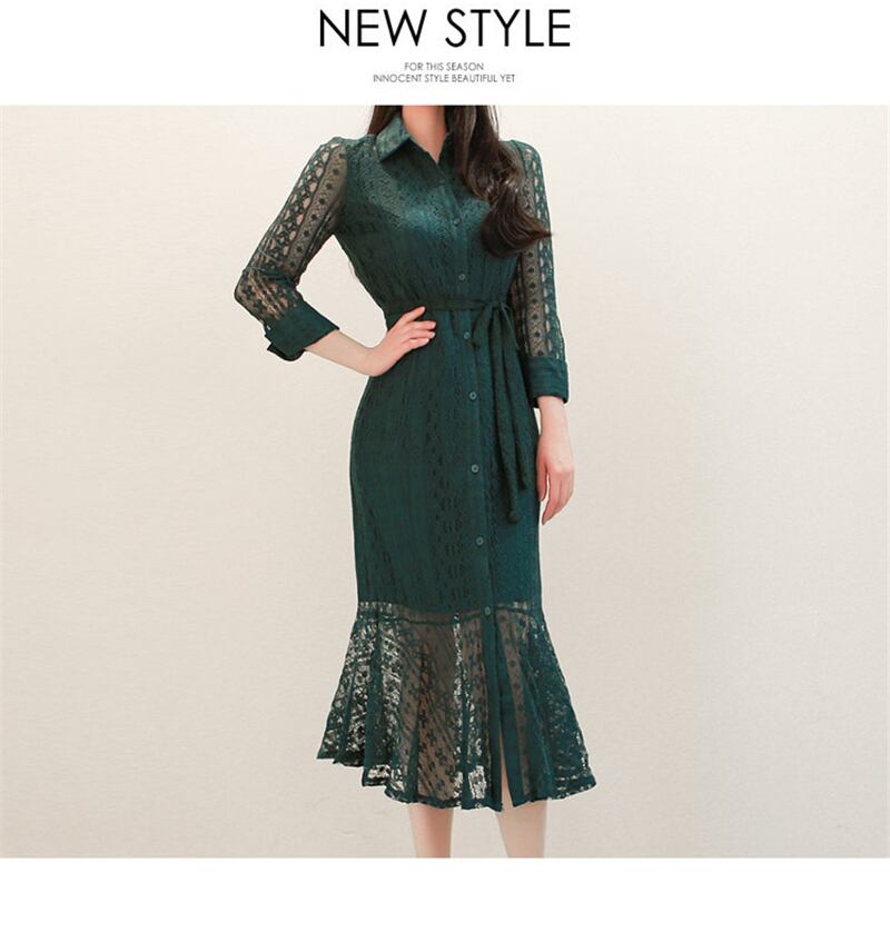 【新作】【送料無料】 ヴィンテージターンダウンカラーレースアップ女性マーメイドドレスシングルブレストレースアップロングドレス2019パーティーVestidosfemme フェミニン ビンテージ 12b186887600036
