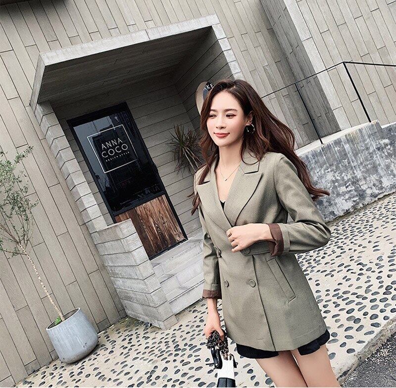 【新作】【送料無料】 Vintage Double Breasted Women Blazers Notched Collar Office Lady Blazers Outwear 2019 Autumn blaser femeninos vestefemme オータム 秋物 フェミニン ビンテージ 会社 学校 通勤や通学にも 12b116529494154