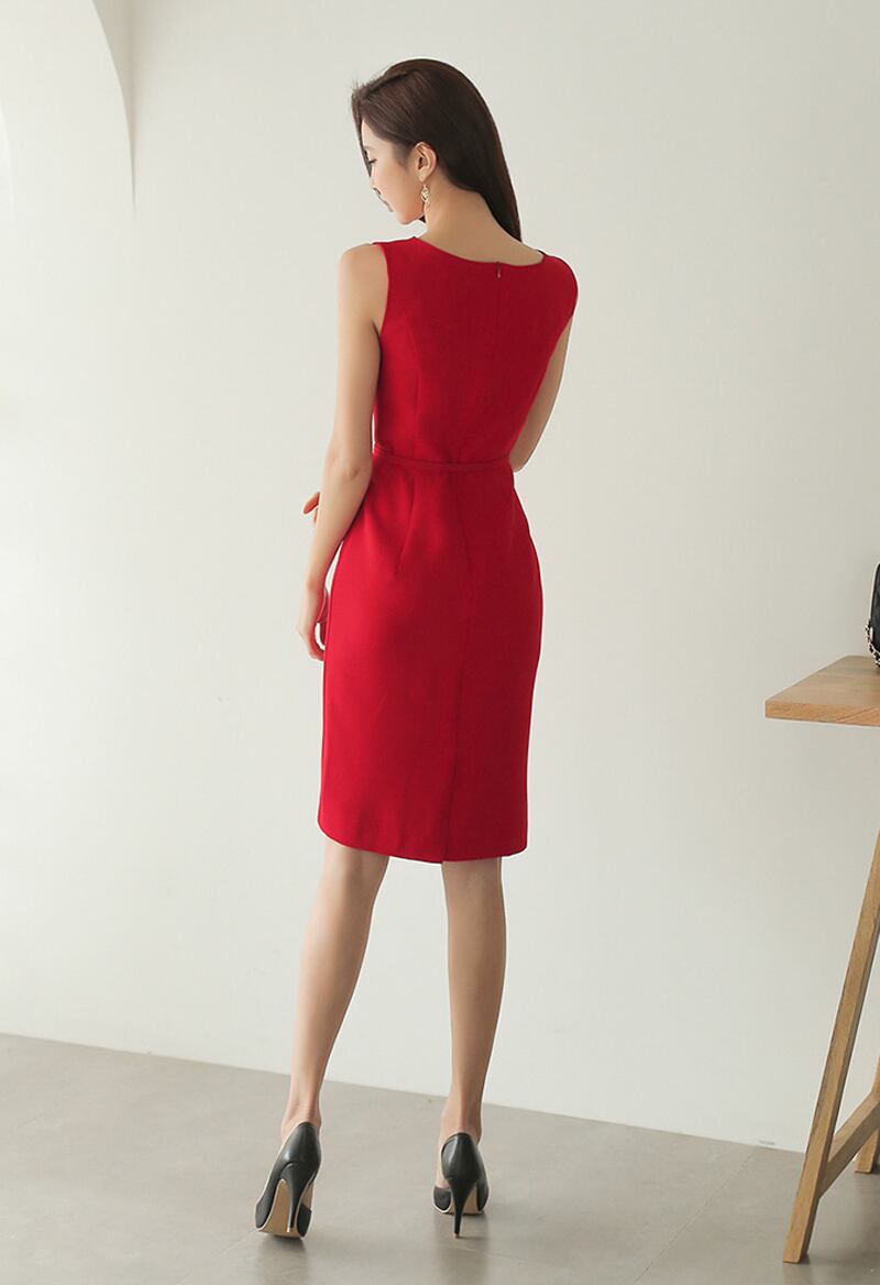 【新作】【送料無料】 BGTEEVERサマースラッシュネックミドルレングスワークビジネスペンシルドレスレディースサッシウエストOLドレスVestidosfemme 2020 夏物 フェミニン 12b170836212202