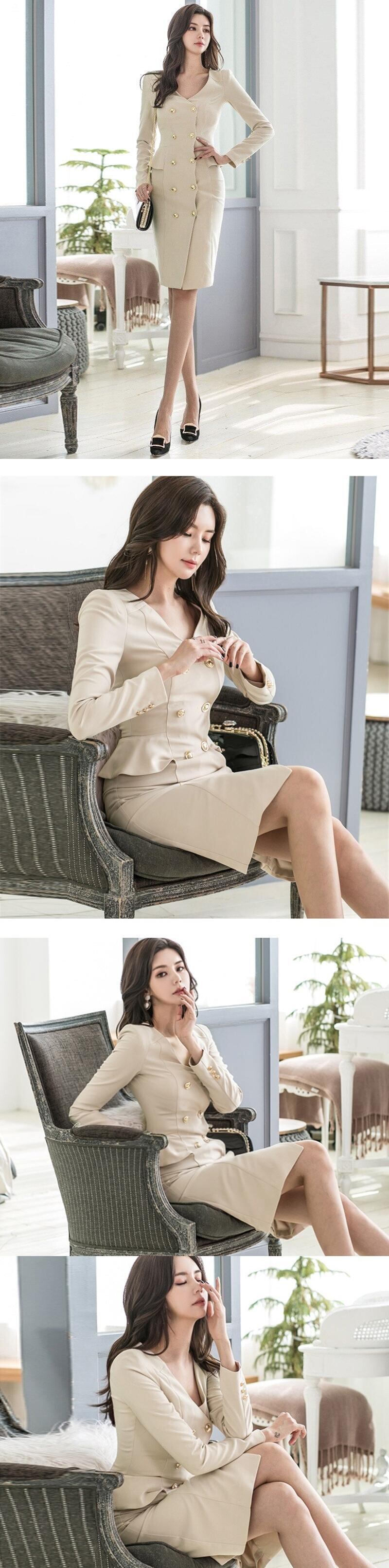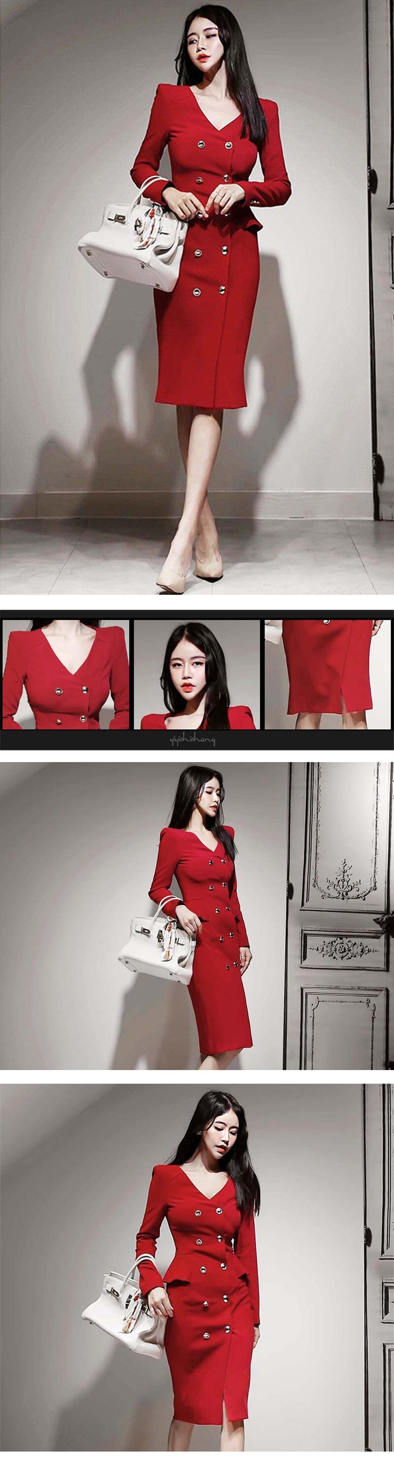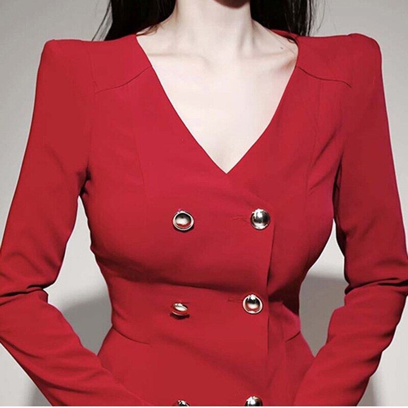 【新作】【送料無料】 BGTEEVER秋のVネックレディースドレスオフィスウェアダブルブレストフリルフルスリーブドレススリムミドル丈Vestidos ラッフル オータム 秋物 会社 学校 通勤や通学にも 12b11675467445