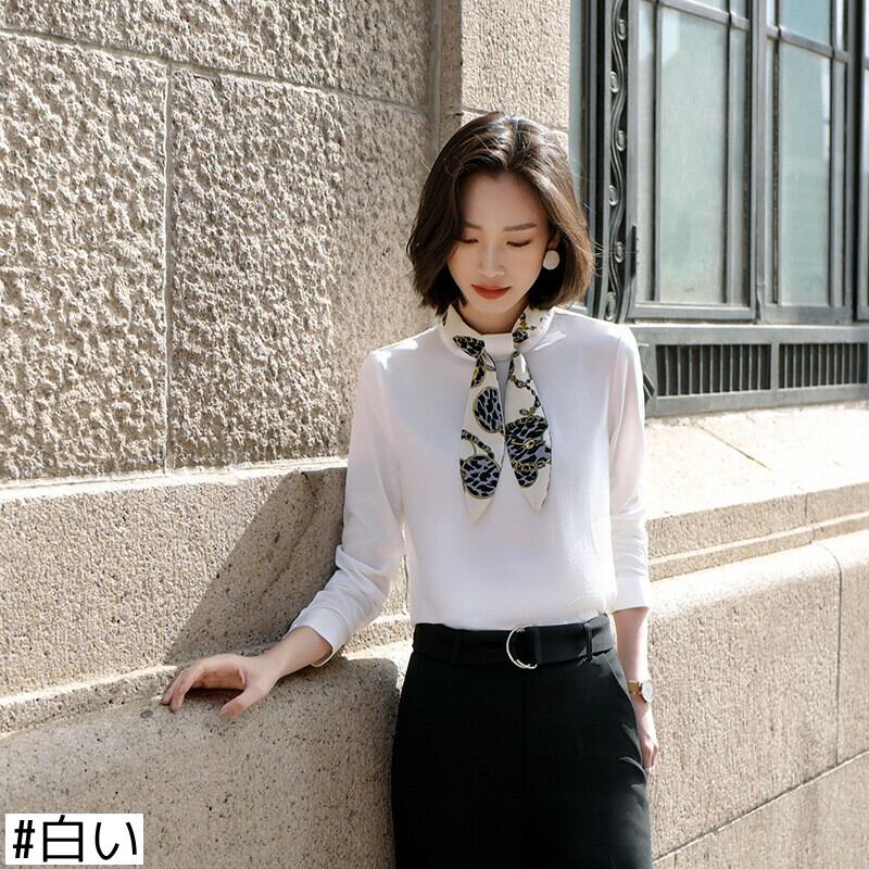 【新作】【送料無料】 Real s2020春秋新作長袖アセテートサテンシャツウィメンズワイルドルーズラージサイズ気質ビジネスシャツ-Alibaba ロング 大きめサイズ スプリング 春物 オータム 秋物 12b255218300902