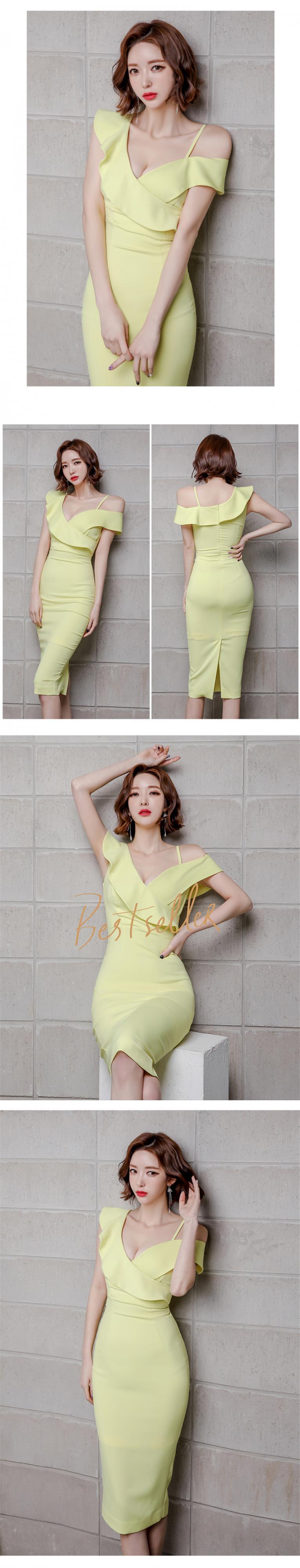 【新作】【送料無料】 オフィスワンショルダーVネックシースレディースドレスウエストフリルペンシルドレスOLスタイルVestidosfemme 2019 ラッフル フェミニン 会社 学校 通勤や通学にも 12b188050268911