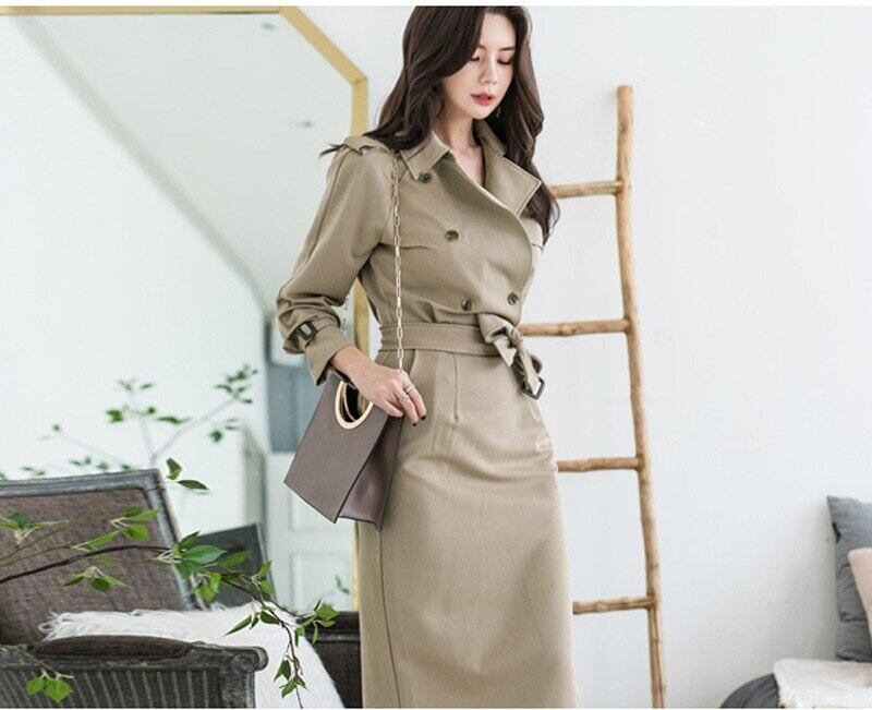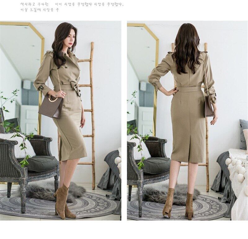 【新作】【送料無料】 BGTEEVER秋のターンダウンカラーレディースドレスフルスリーブベルトスリムバックスプリットドレスヒップパッケージ オータム 秋物 ハーネス 12b193901986534