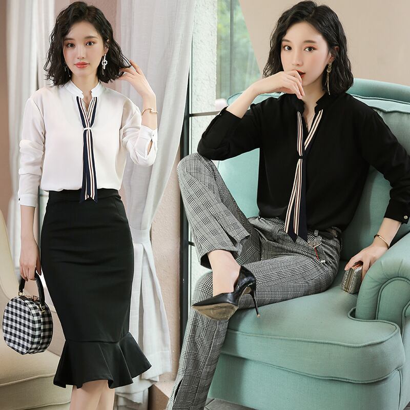 【新作】【送料無料】 秋のシャツの女性の長袖2019新しいバージョンのマルウェアVネックワイルドルーズコントラストカラーファッションシャツオーバーオール-アリババ ロング オータム 秋物 12b343544804980
