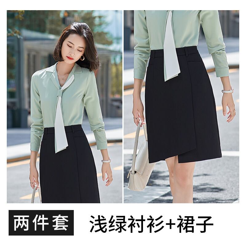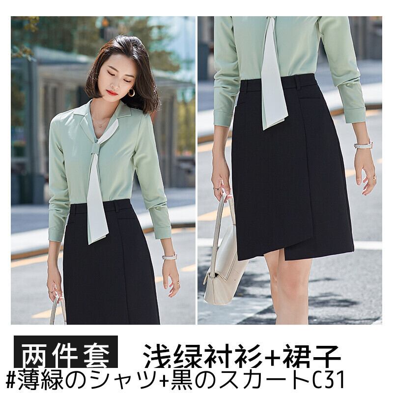 色:白い,薄緑,白いシャツ+ライトグレーのスカートC31,薄緑のシャツ+黒のスカートC31