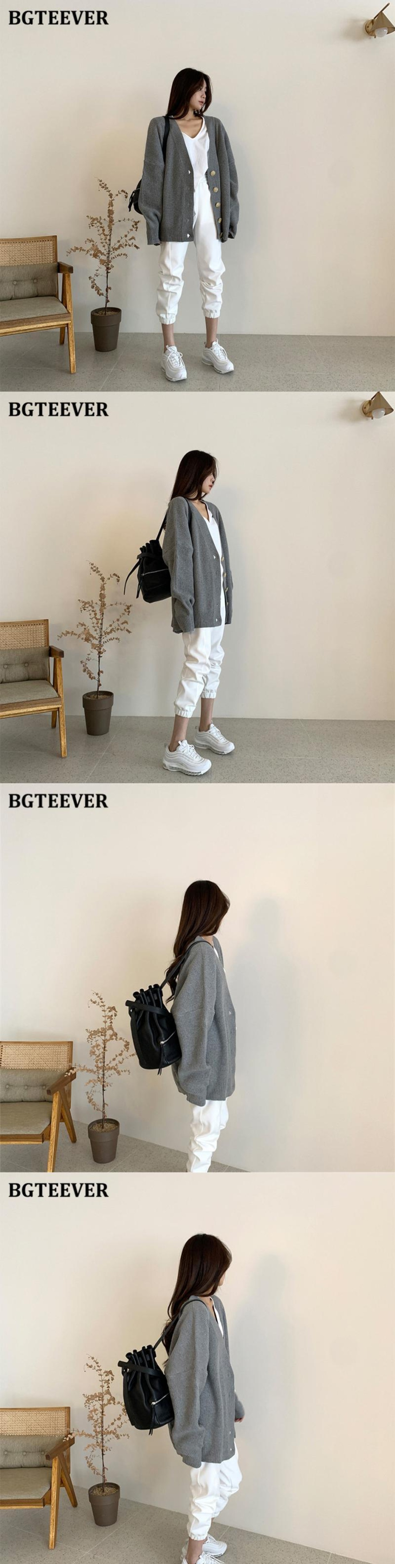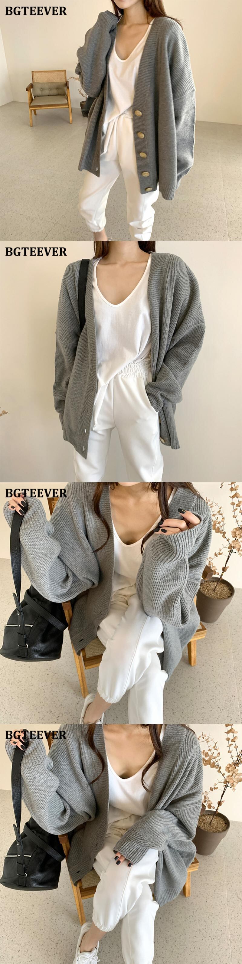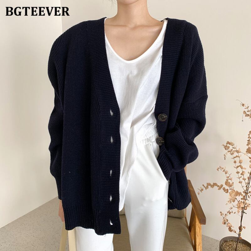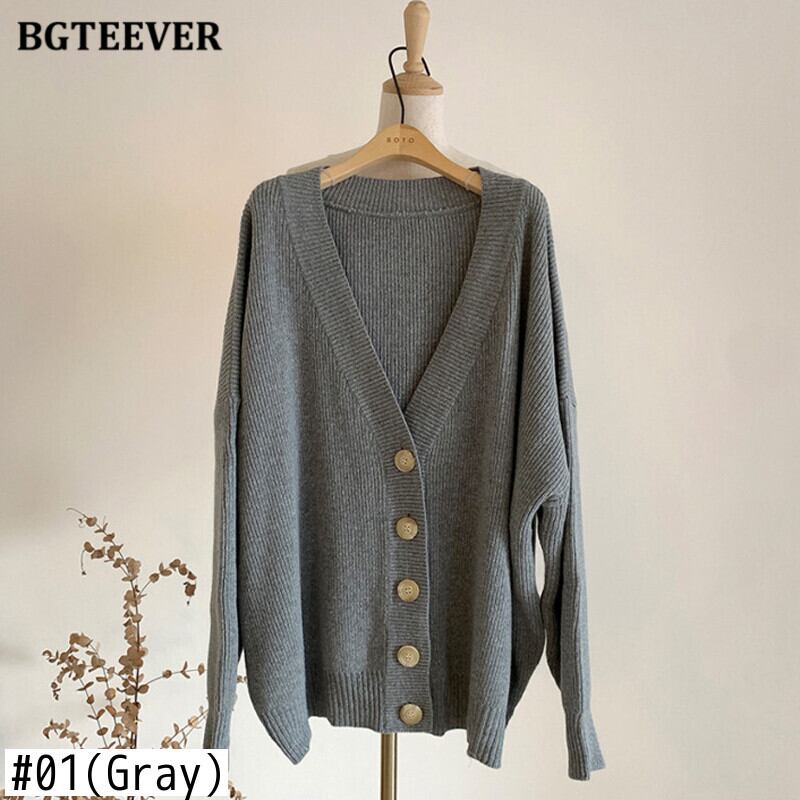 【新作】【送料無料】 BGTEEVERルーズVネックソリッドカーディガンセーター秋冬シングルブレスト女性ニットアウタートップス2020 オータム 秋物 ウィンター 冬物 ソリッドカラー 12b115483323246