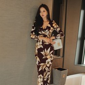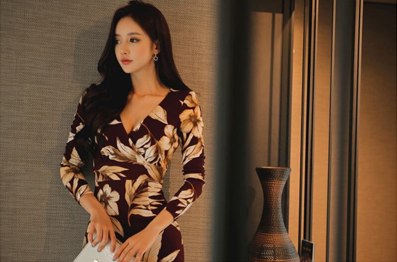 【新作】【送料無料】 セクシーなVネックプリントスリムウエストボディコンドレス女性2019春シースヒップパッケージドレスフィット自由奔放に生きるビーチロングVestidos スプリング 春物 12b193273921741