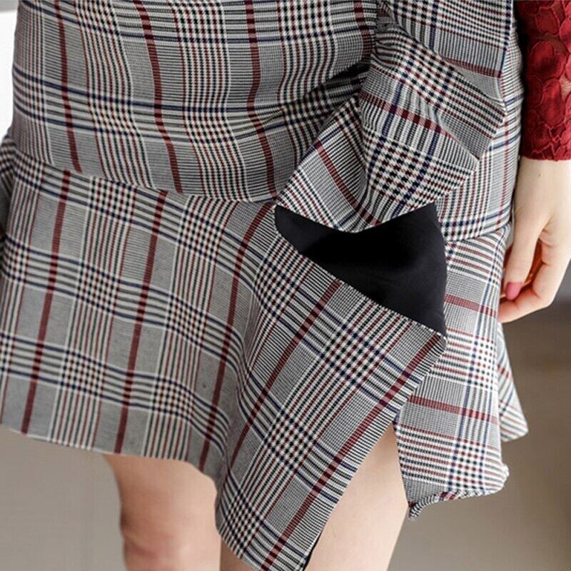 【新作】【送料無料】 BGTEEVER2ピースセットフリルレースホローアウトブラウス&ウエストチェック柄ショートスカートスーツ2019レディースセット ラッフル 12b196863247227