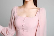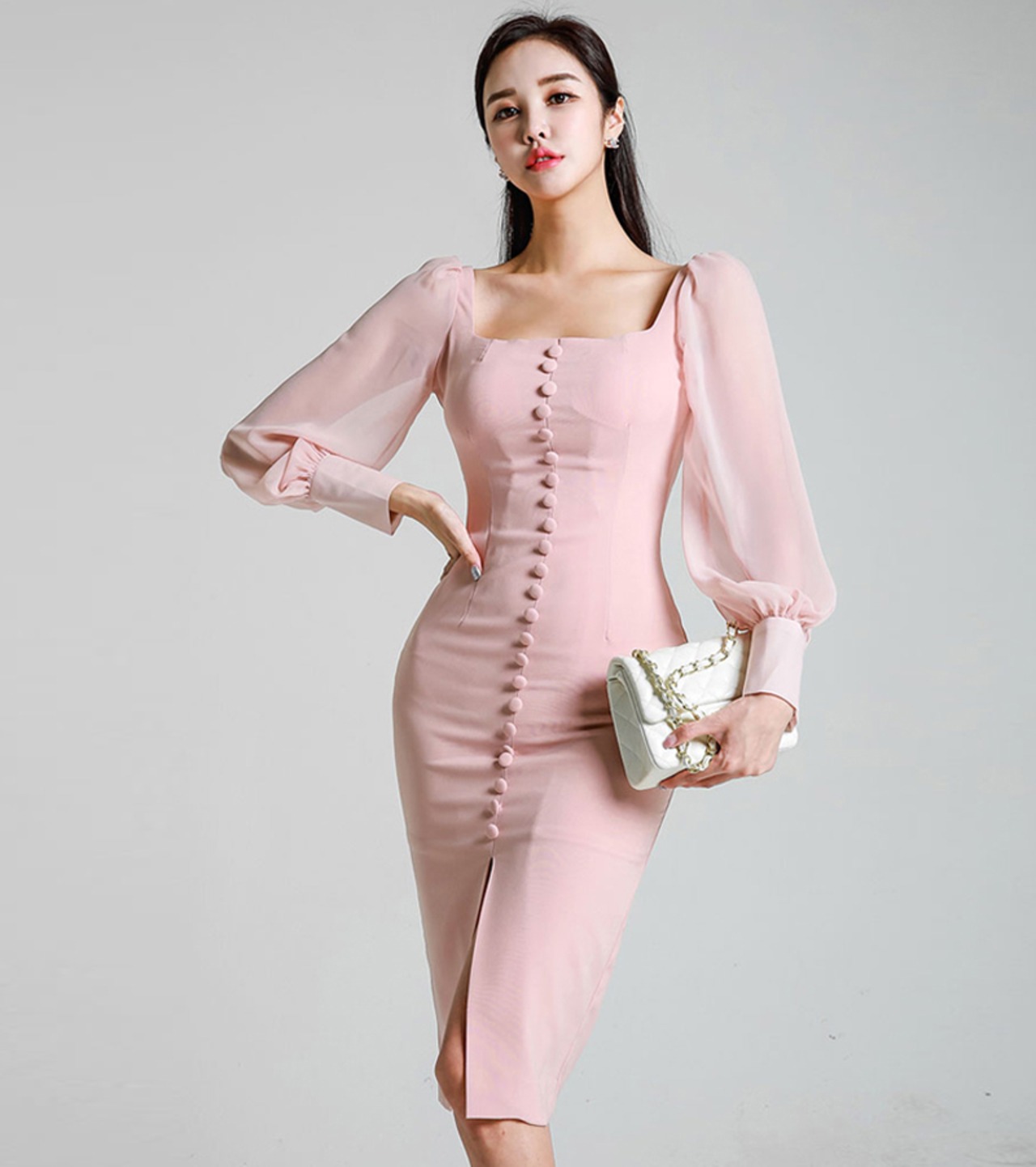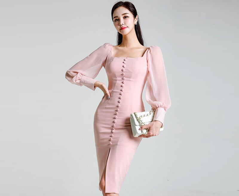 【新作】【送料無料】 ヴィンテージスクエアカラーシフォンパッチワークレディースドレスランタンスリーブフロントスプリットミディパトリードレスファムヒップパッケージセクシーなVestidos フェミニン スクウェア ビンテージ 12b182697368488