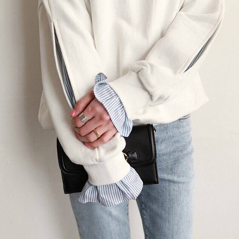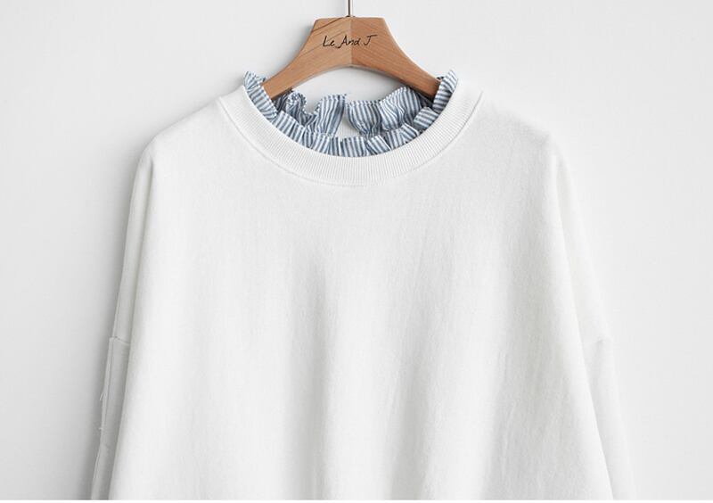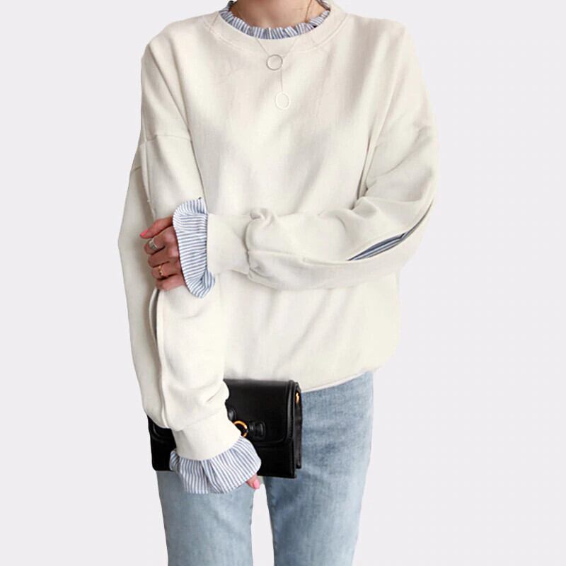 【新作】【送料無料】 シャツパッチワーク女性スウェットシャツOネックホワイトルーズパーカーウォームプルオーバーファム秋 オータム 秋物 フェミニン 12b140593375542
