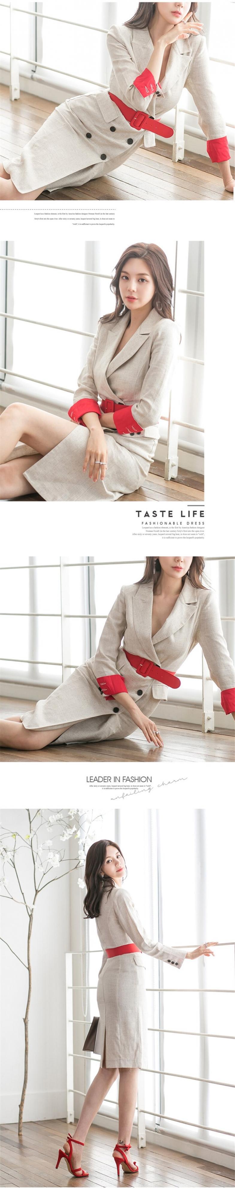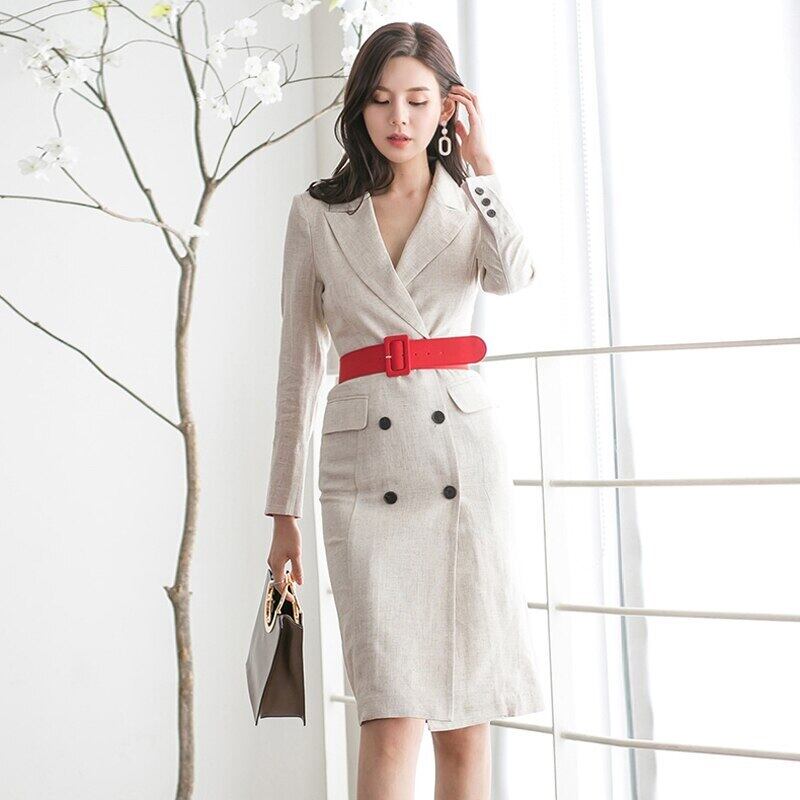 【新作】【送料無料】 BGTEEEVRオフィスノッチカラーレディースドレスダブルブレストサッシベルトペンシルドレス2019秋のVestidosファム オータム 秋物 ハーネス フェミニン 会社 学校 通勤や通学にも 12b199927362798