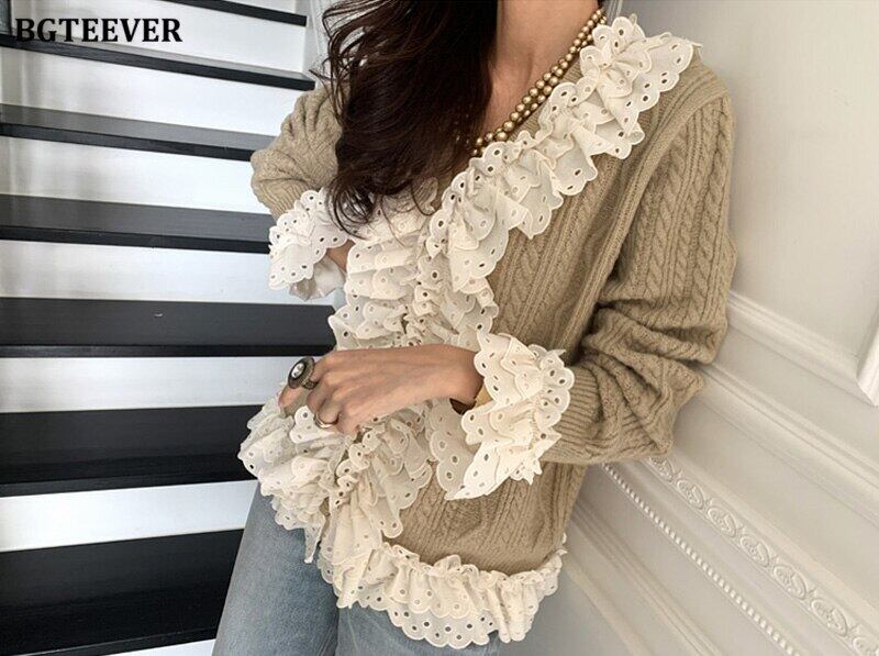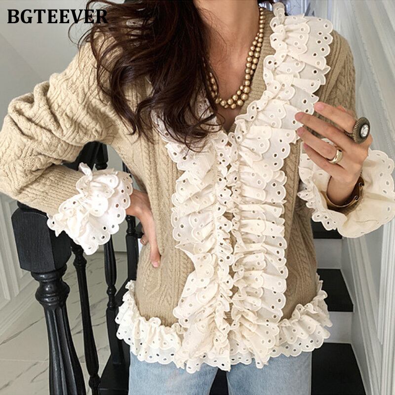 【新作】【送料無料】 BGTEEVERシックな花びらパッチワークVネック女性オープンステッチセーターヴィンテージシングルブレストスリムニットカーディガン2020 ビンテージ 12b189871270077