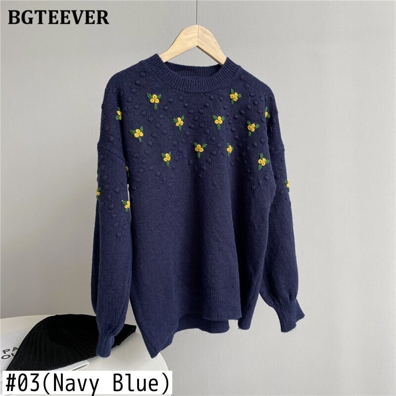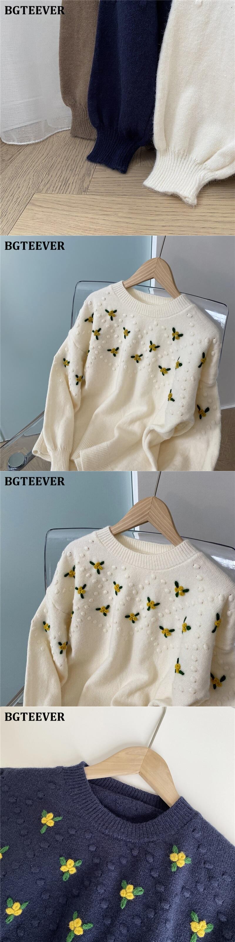 【新作】【送料無料】 BGTEEVER Vintage Embroidery Women Pullover Sweaters O-neck Warm Loose Knitted Jumpers Autumn Knitwear 2020 刺繍 オータム 秋物 Oネック ビンテージ 12b141414414780