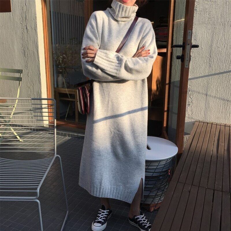 【新作】【送料無料】 BGTEEVERシックオーバーサイズ秋冬ドレスタートルネックレディースセータードレスロングジャンパードレスニット オータム 秋物 ウィンター 冬物 12b142619427076