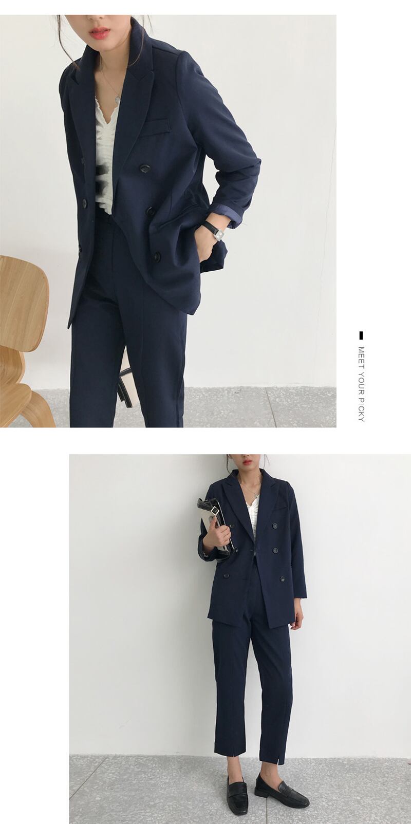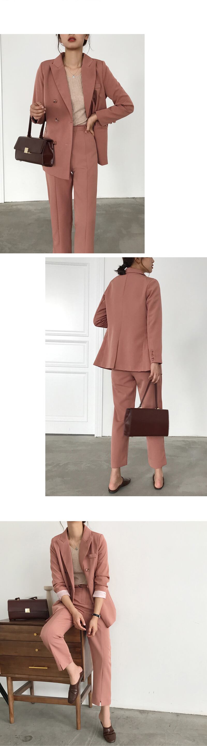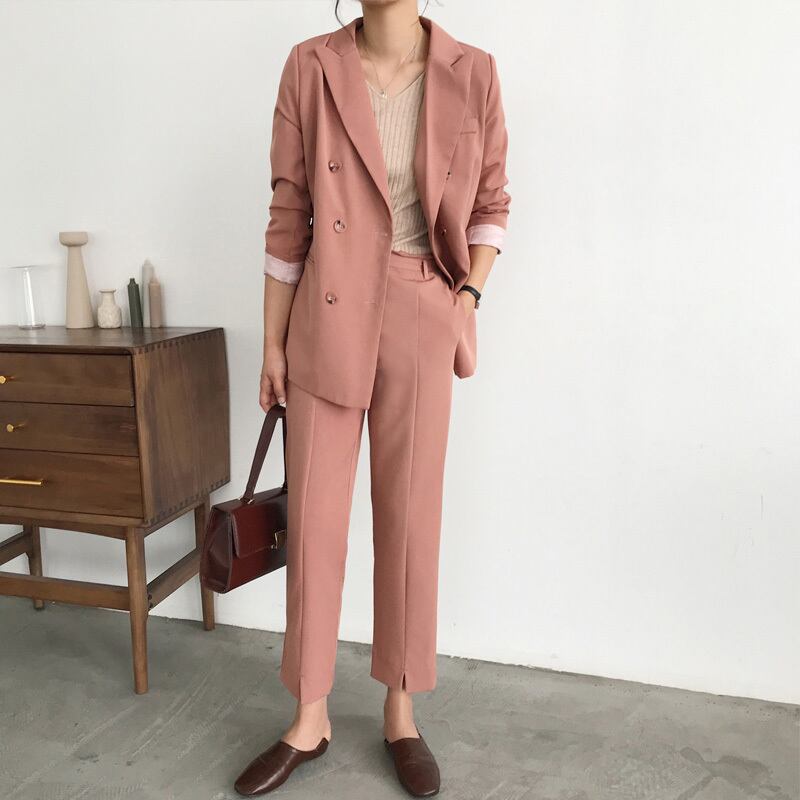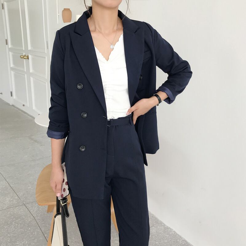【新作】【送料無料】 2ピースセットレディースパンツスーツダブルブレストノッチネックジャケットブレザー&サッシパンツワークウェアスーツ2019 12b118282917491