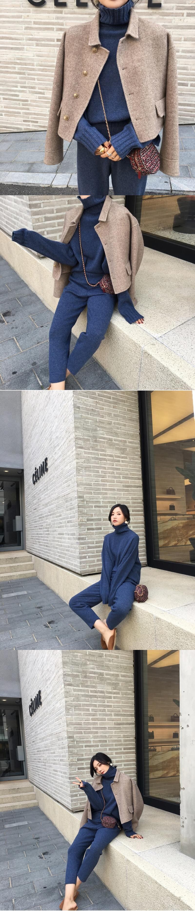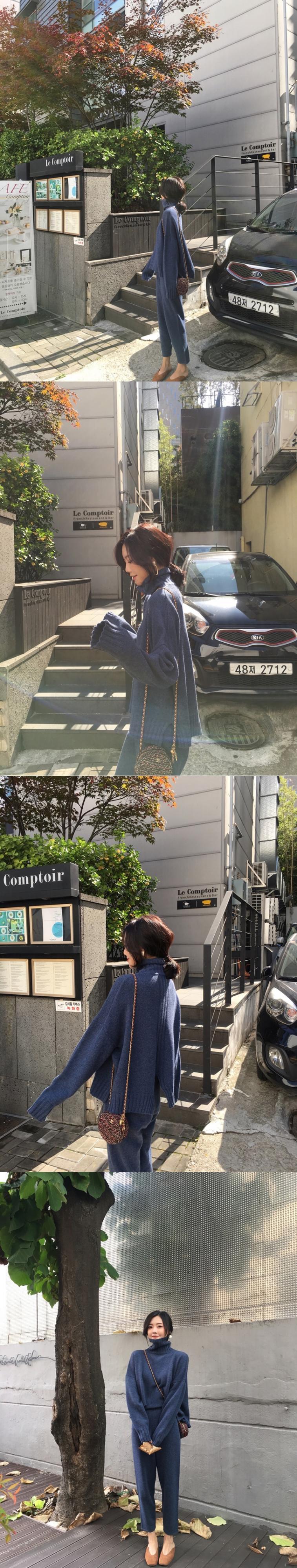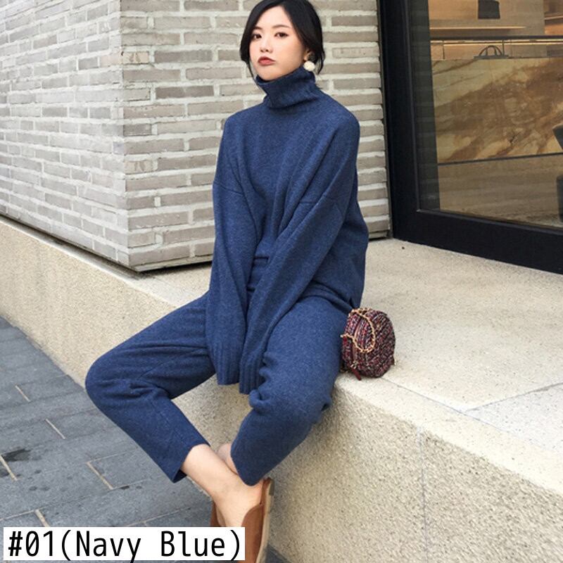 【新作】【送料無料】 セーターパンツニット2点セットタートルネックプルオーバー&伸縮性ウエストパンツレディースセーターセット2020秋ニットセット エラスティック オータム 秋物 12b177270156814