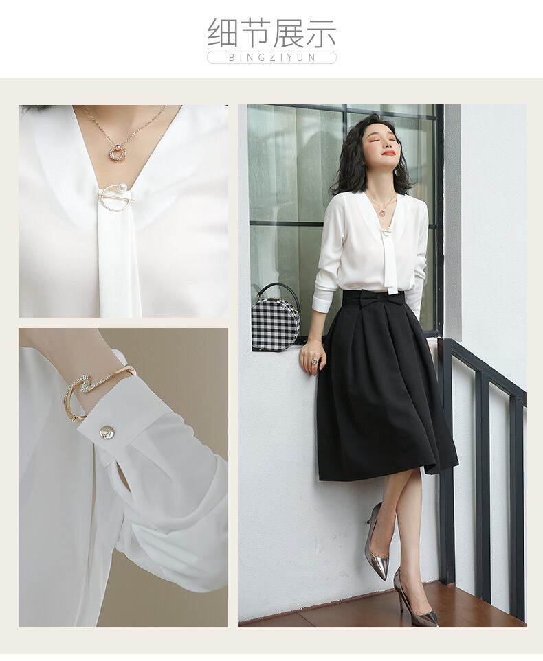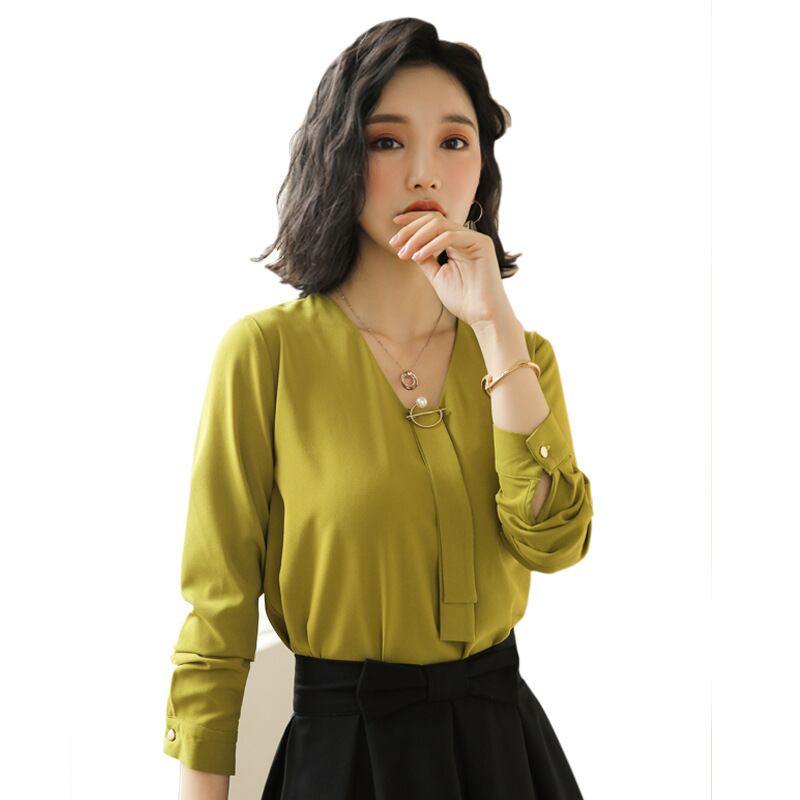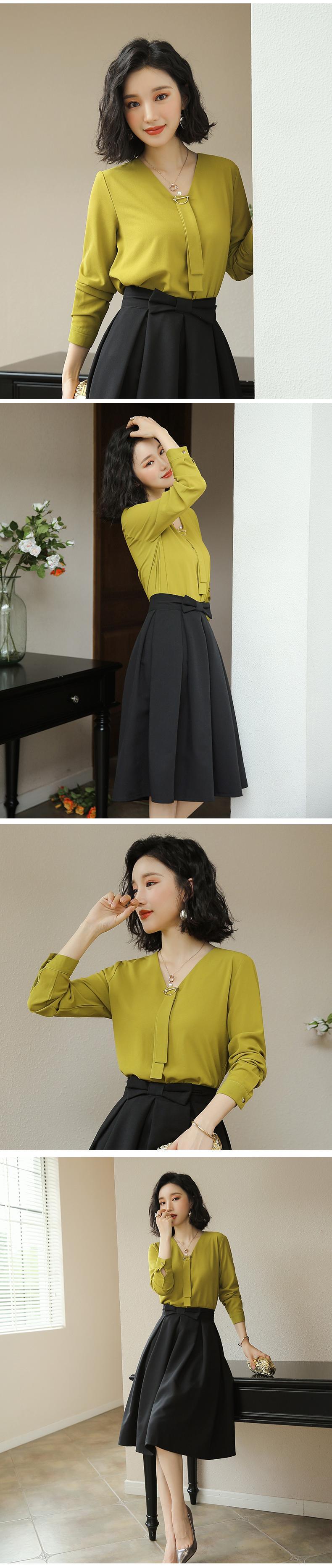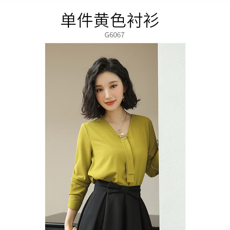 【新作】【送料無料】 秋の長袖シャツの女性2019新しいスタイルのファッション気質Vネックトップスリムプロのマルウェアオーバーオール-アリババ ロング オータム 秋物 12b353606239149