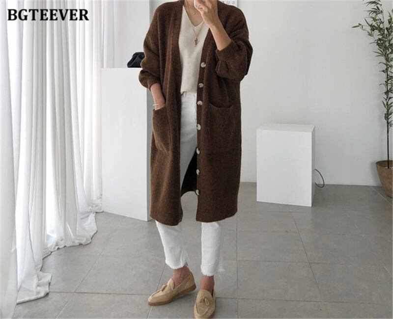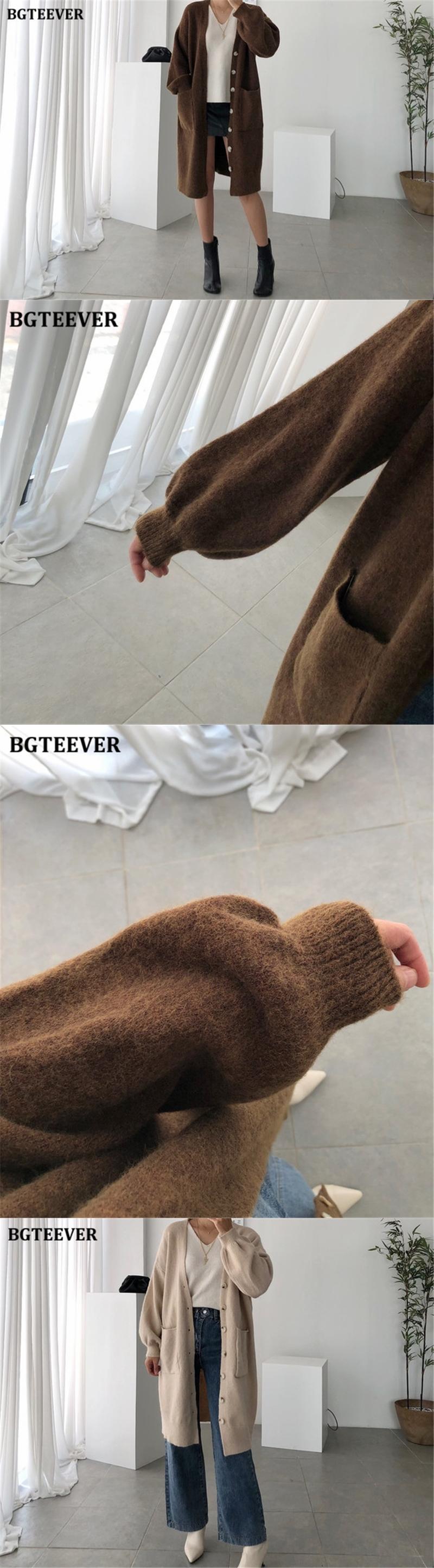 【新作】【送料無料】 BGTEEVERVネックソフトウォームレディースオープンステッチセーター2020ウィンターシックルースシングルブレストポケットニットカーディガン 冬物 12b165148551436
