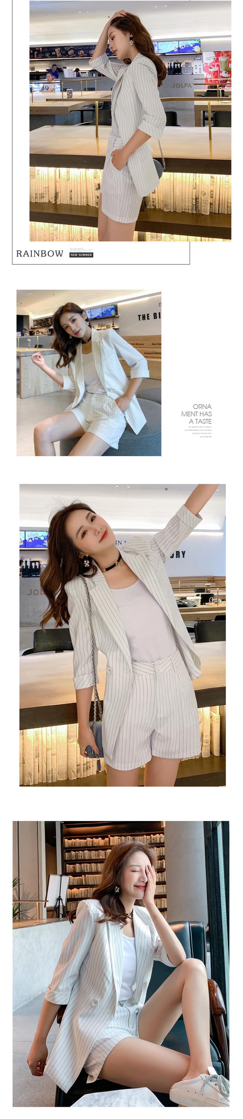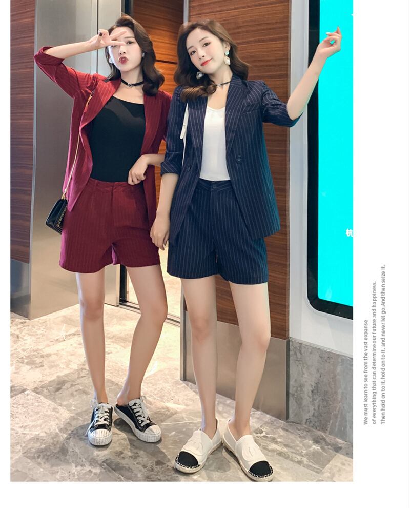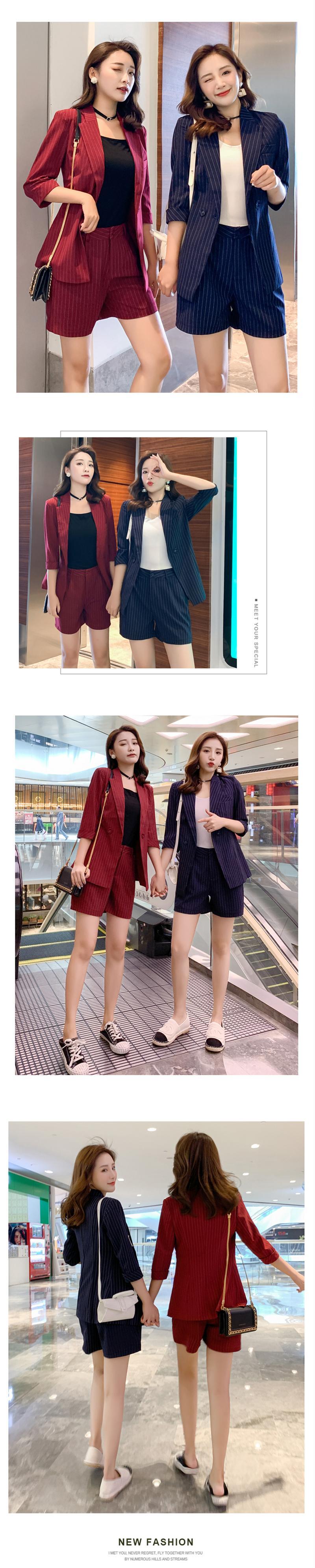 【新作】【送料無料】 オフィスレディースストライプパンツスーツハーフスリーブジャケットブレザー&ウエストホットショーツ2点セットショートスーツ 半袖 ブルマー 会社 学校 通勤や通学にも 12b17395763615