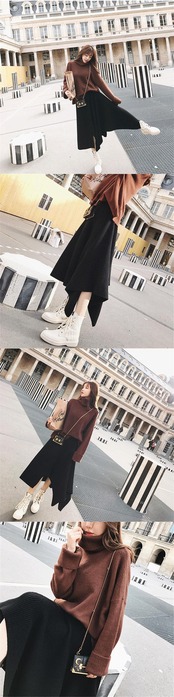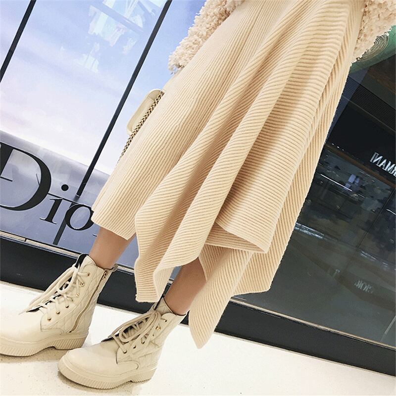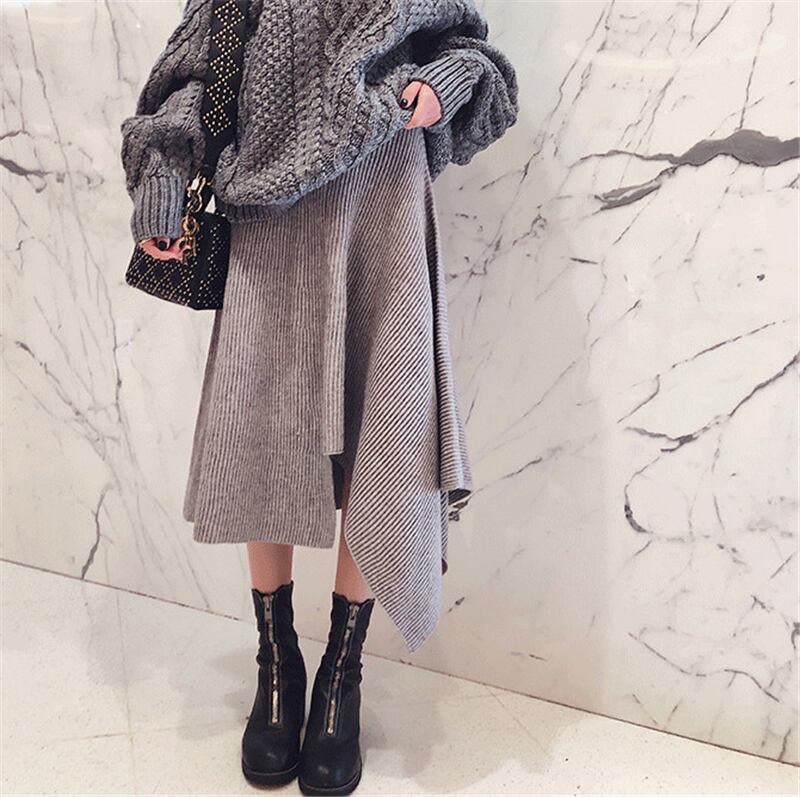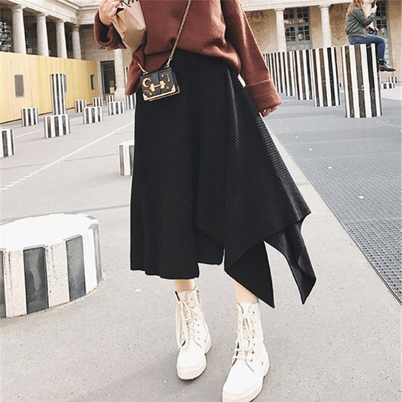 【新作】【送料無料】 BGTEEVERAライン不規則な女性のセータースカート弾性ウエストプリーツミドル丈ニットスカート2019冬のスカート エラスティック 伸縮 ウィンター 冬物 12b177018566168