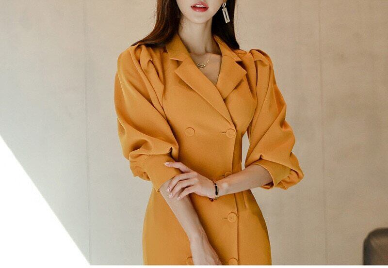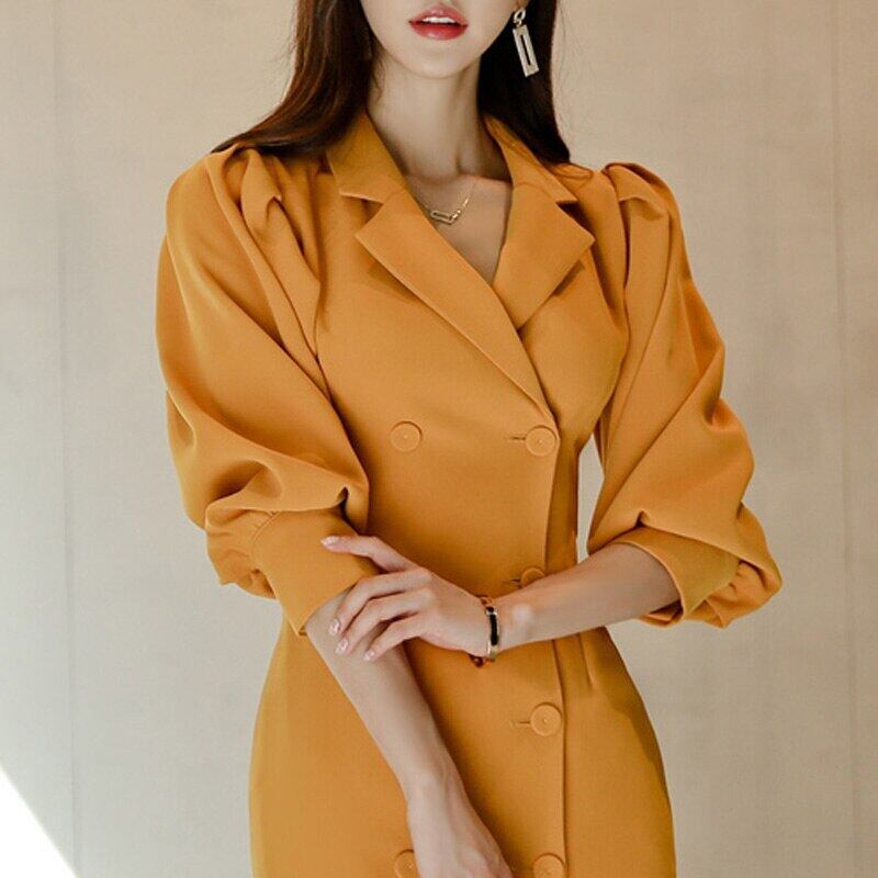 【新作】【送料無料】 BGTEEVERヴィンテージノッチカラーダブルブレストレディースドレスシースランタンスリーブドレスMidiVestidos 2019 ビンテージ 12b184783256145