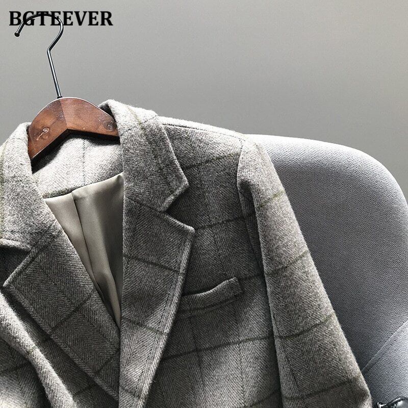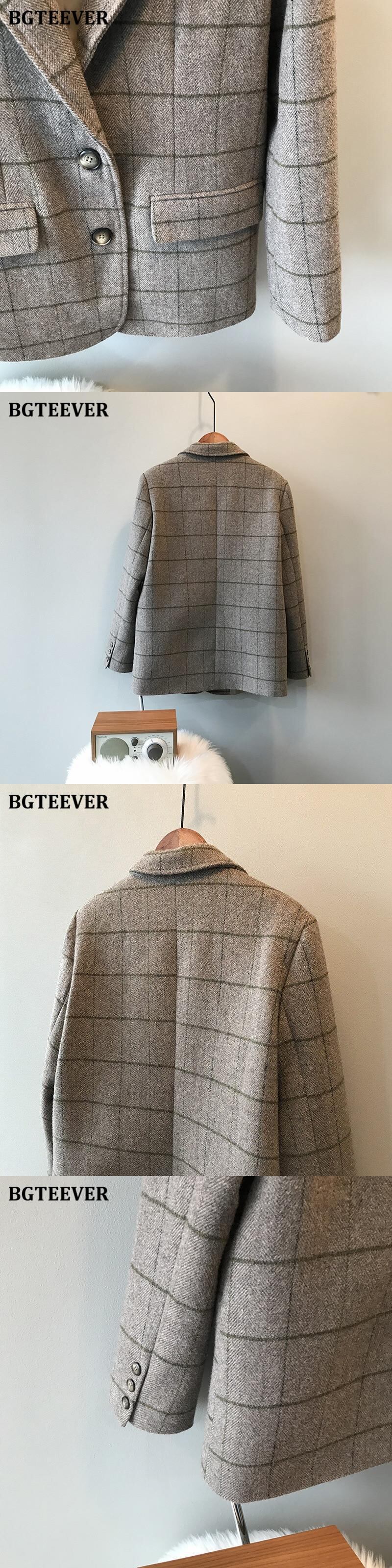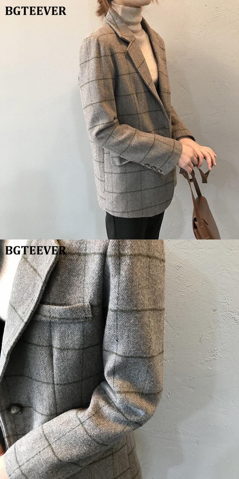 【新作】【送料無料】 BGTEEVER秋冬ウール女性チェック柄スーツジャケットルーズシングルブレストウォームロングスリーブブレイザー2020 長袖 オータム 秋物 ウィンター 冬物 12b124505496209