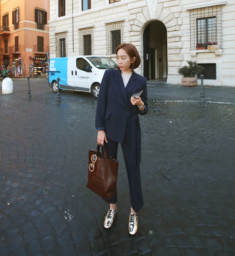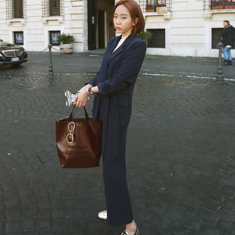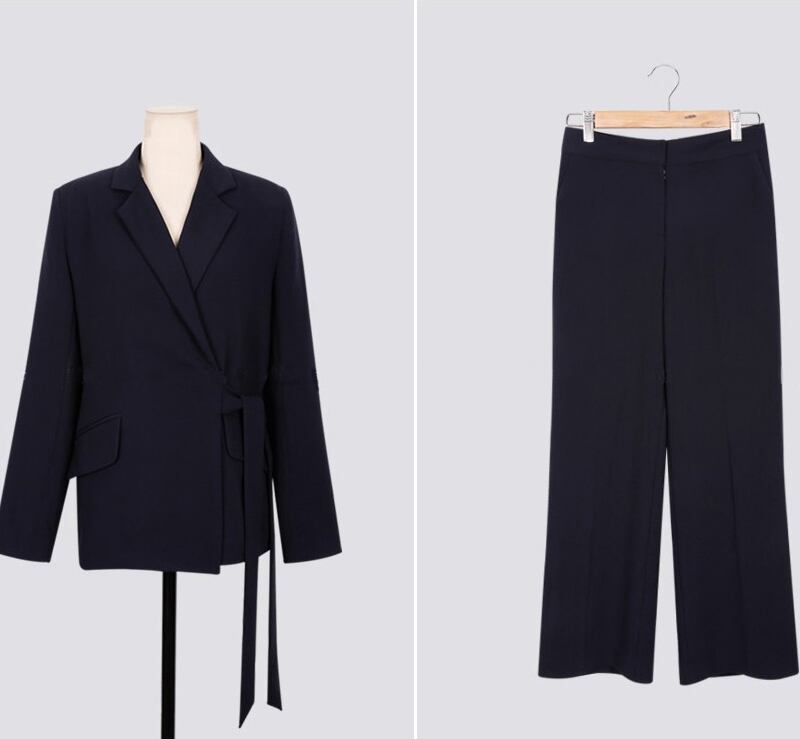 【新作】【送料無料】 サイドバンデージノッチ付きカラーとワイドレッグパンツスーツ2ピースオフィスセット女性ジャケットとサッシ付きズボン作業服 ワイドパンツ 会社 学校 通勤や通学にも 12b151375637302