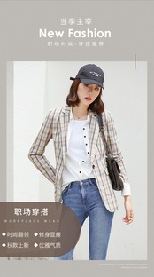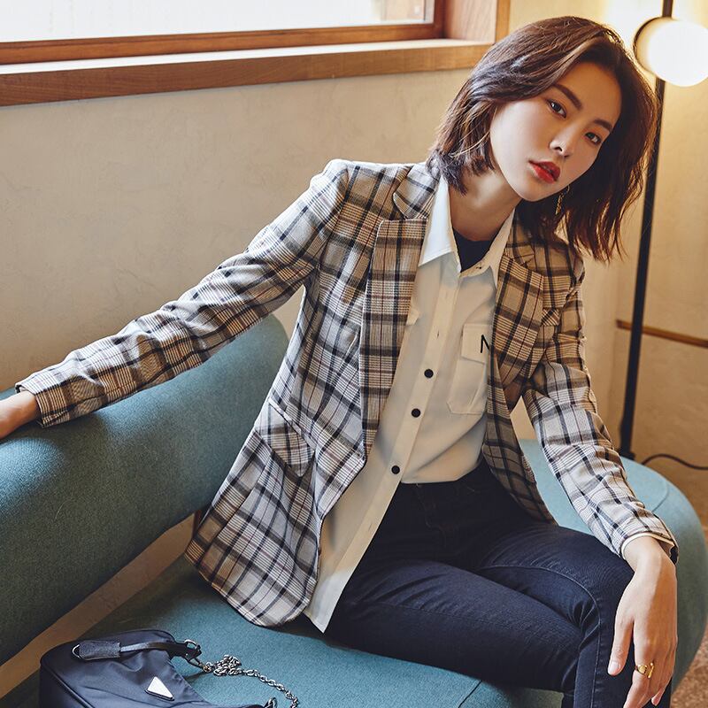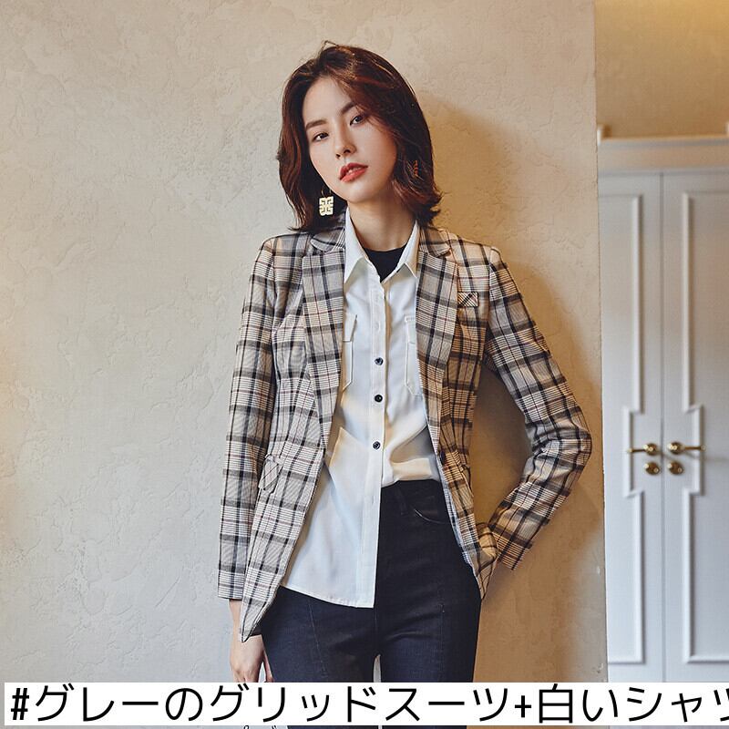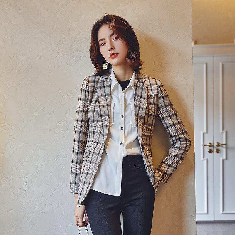 【新作】【送料無料】 本物の小さなスーツジャケットレディースプラスサイズ2020秋と冬の新しいカジュアルチェック柄スーツレディーストレンディなトップス-アリババ 大きめサイズ オータム 秋物 ウィンター 冬物 12b25626956169