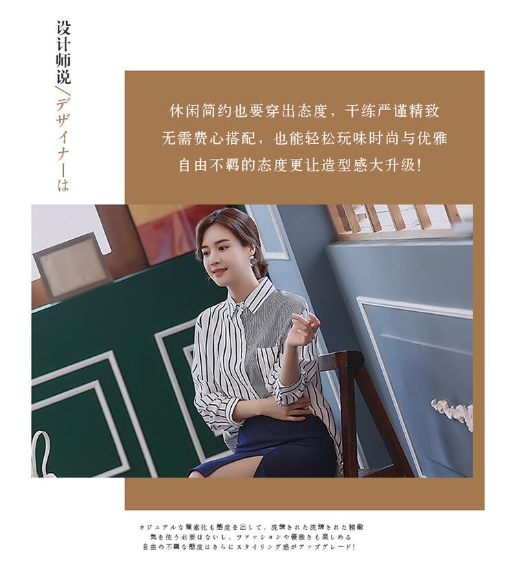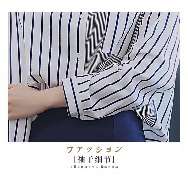 【新作】【送料無料】 本物のスタイルのステッチストライプシャツ女性プラスサイズ2020春と秋新しい長袖の薄いアウターウェアルーズシャツ-アリババ ロング 大きめサイズ スプリング 春物 オータム 秋物 12b267806549897