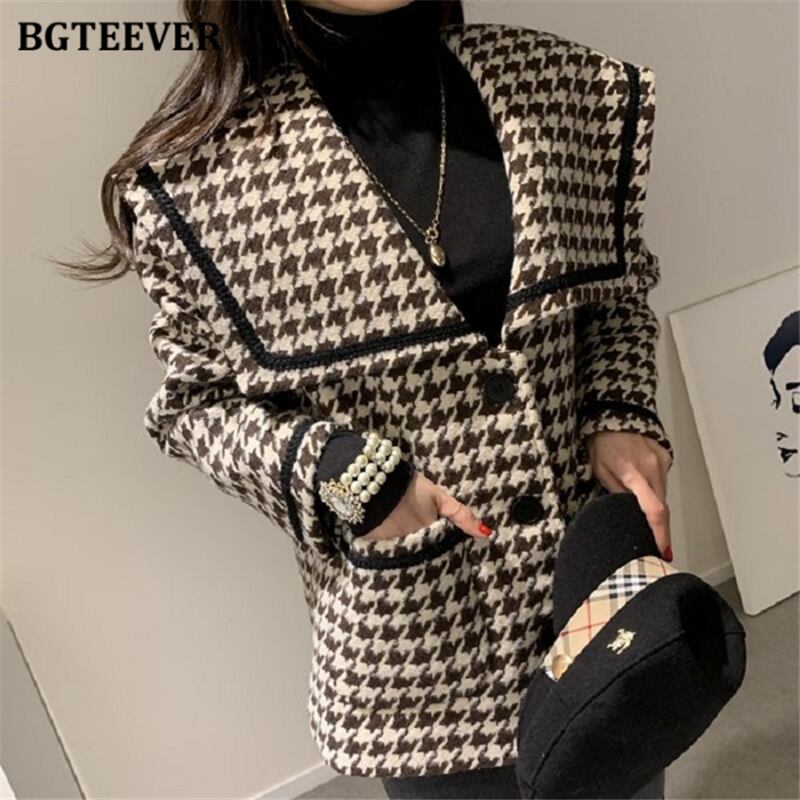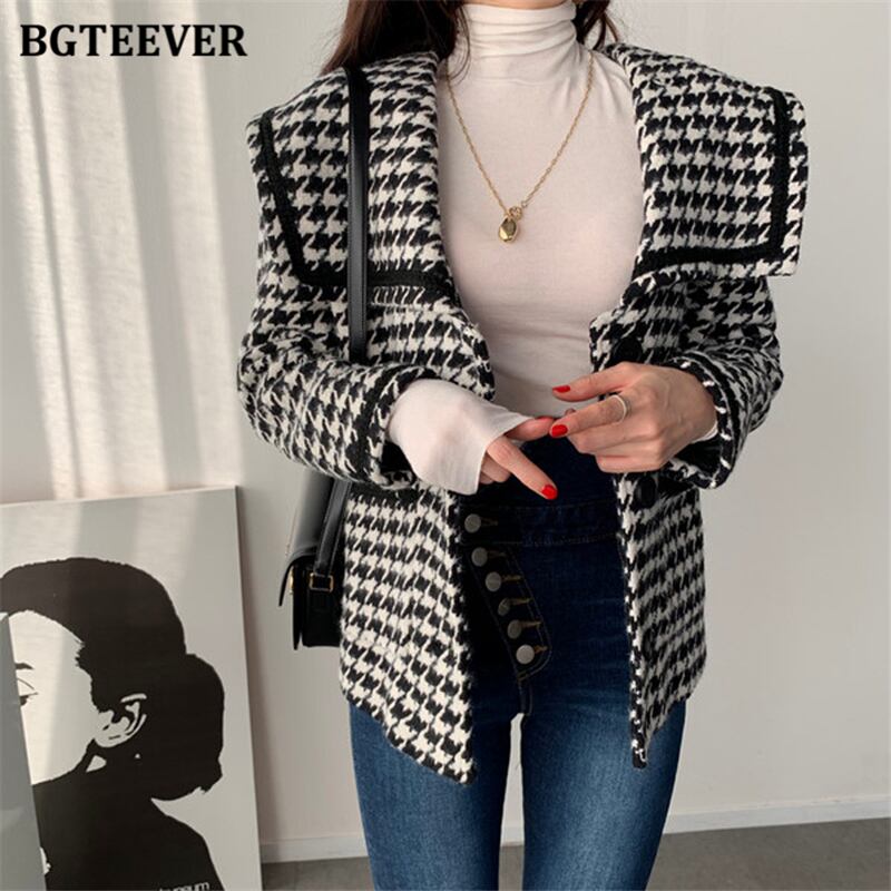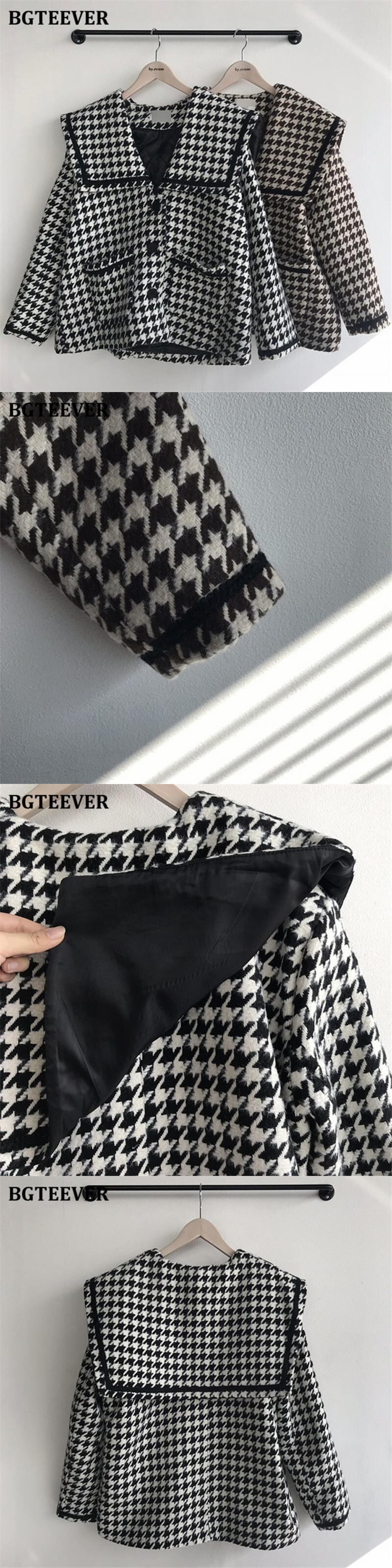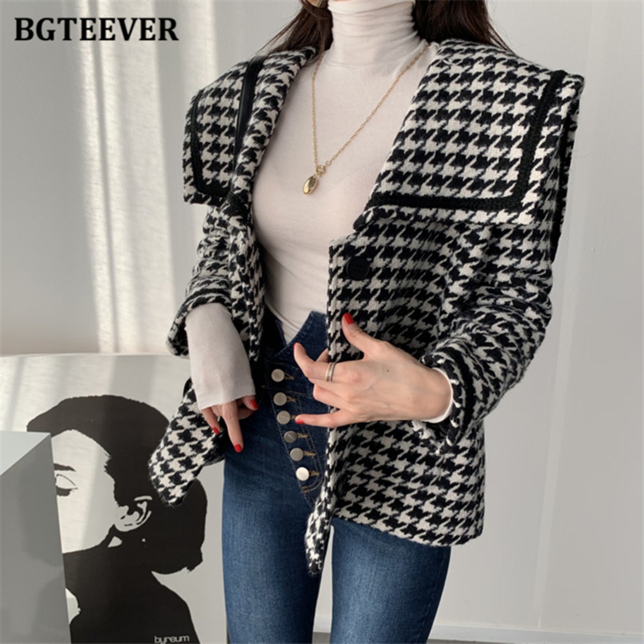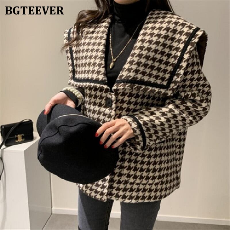 【新作】【送料無料】 BGTEEVER Winter Thick Warm Sailor Collar Women Houndstooth Woolen Jacket Single-breasted Loose Blend Jackets 2020 ウィンター 冬物 12b156422428945