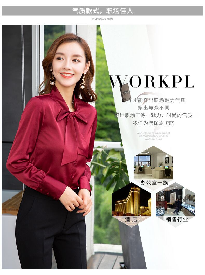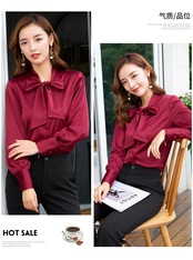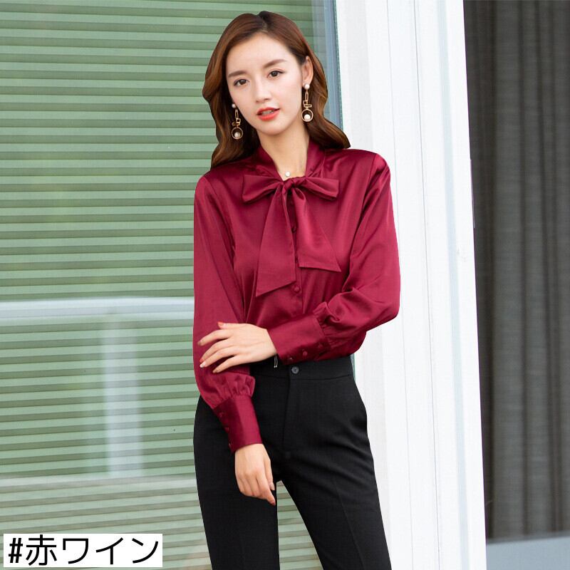 【新作】【送料無料】 2020年春秋新作レディース長袖パリシルクピュアカラーコミューター気質ボウブラウス-アリババ ロング リボン スプリング 春物 オータム 秋物 12b381575665003
