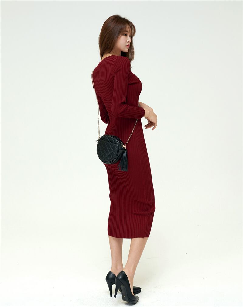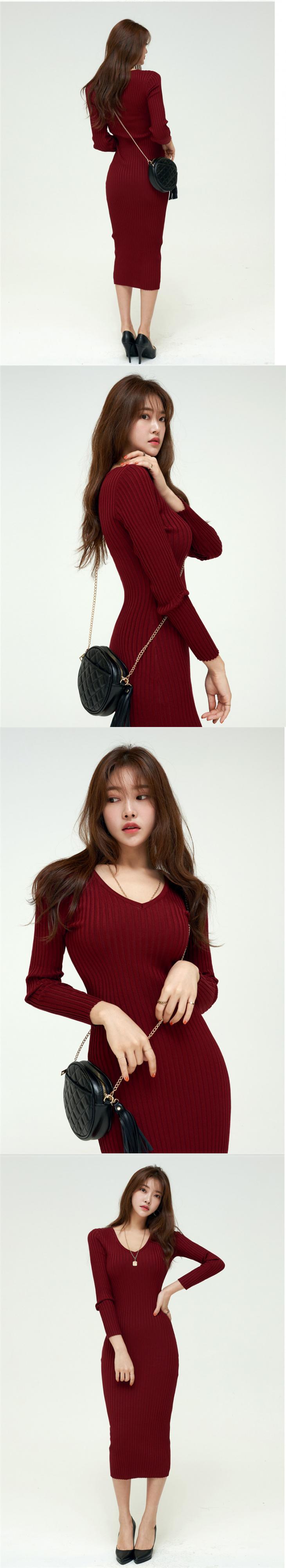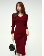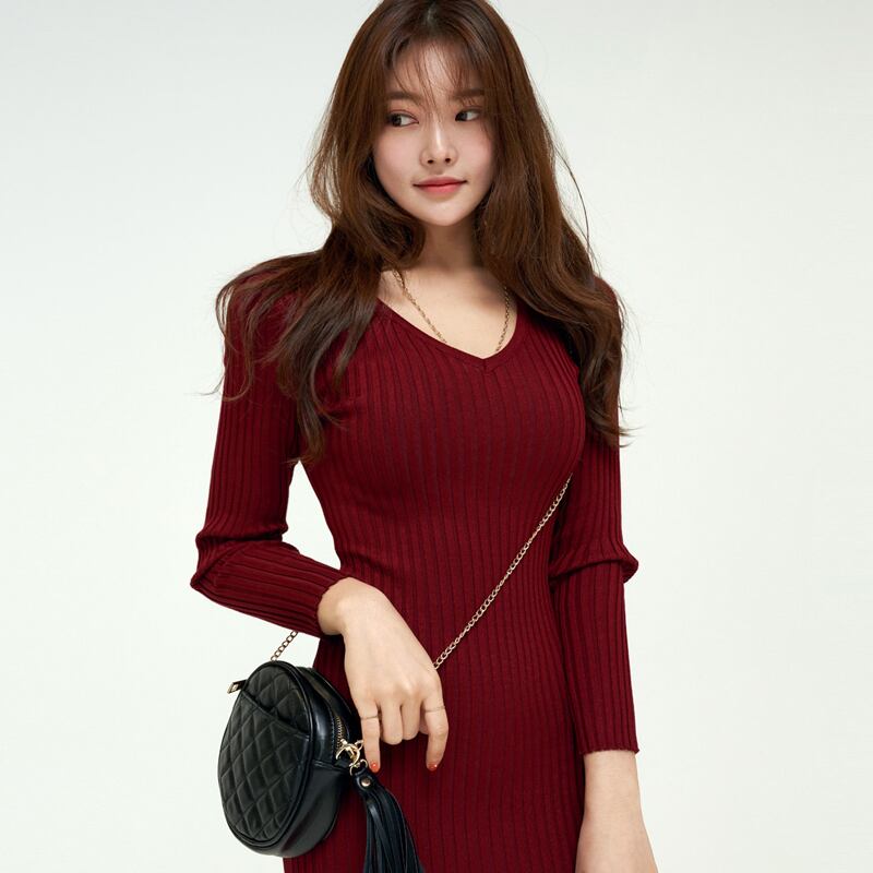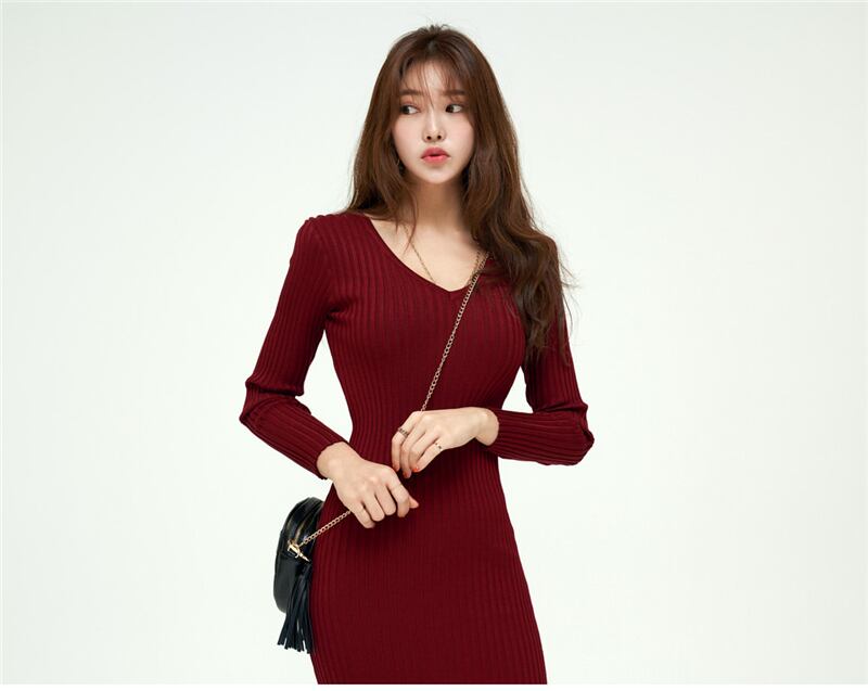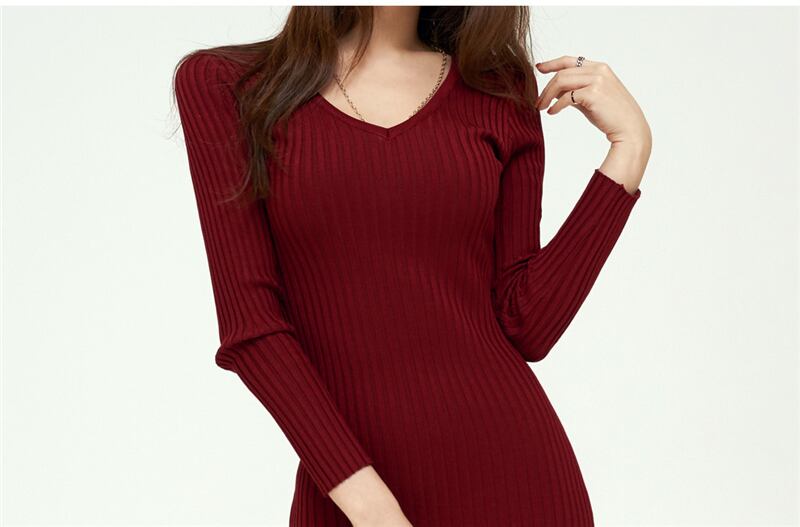 【新作】【送料無料】 秋冬ドレスレディースセータードレスVネックフルスリーブスキニーレディースニットVestidosミディニットドレス2019 オータム 秋物 ウィンター 冬物 12b181935205929